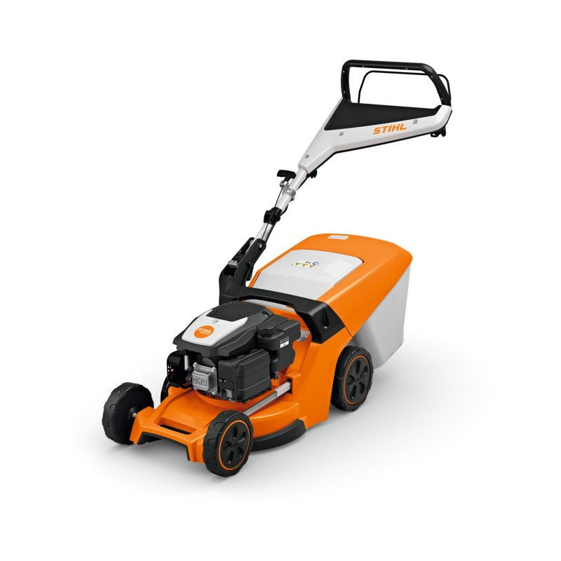 Ērts rokturis ar regulējamu augstumu nodrošina ērtu un ergonomisku griešanu. Centrālā 7 pakāpju pļaušanas augstuma regulēšana ir viegli lietojama un ļauj pļaut zāli augstumā no 20 mm līdz 100 mm. Zāles savākšanas kastei ir 52 l tilpums un tā ir saliekama, tāpēc to var ļoti ātri un vienkārši atvērt un iztukšot. Uzpildes līmeņa indikators vienmēr informē, kad vislabāk ir iztukšot savākšanas maisu.