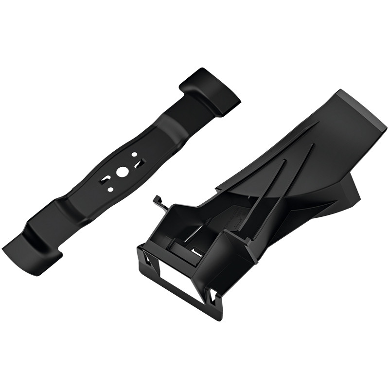 Mulčēšanas komplekts sasmalcina zāli smalkās zāles daļiņās. Smalkie zāles atgriezumi var nokļūt atpakaļ zālienā kā barības vielām bagātīgs mēslojums. Piederumu komplektā iekļauts pļaušanas asmens un mulčēšanas ieliktnis.