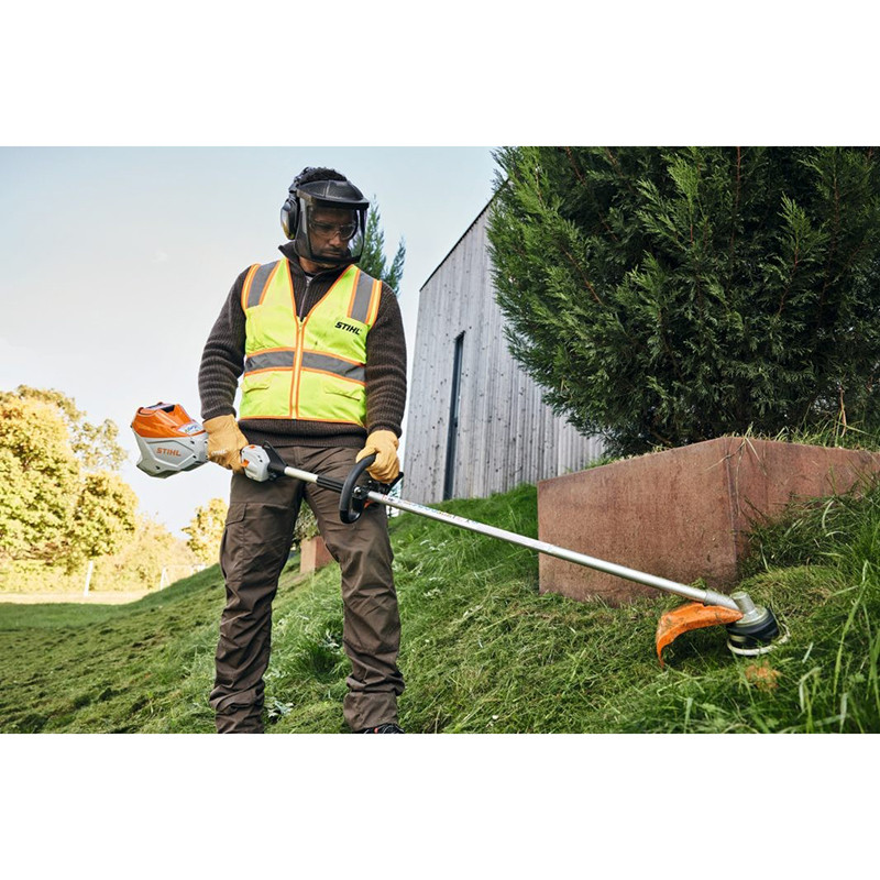Akumulatora trimmeris STIHL FSA 120 R, kas paredzēts dārza un ainavu kopšanas profesionāļiem un sarežģītiem privātiem darbiem, piedāvā ne tikai augstu veiktspēju un efektivitāti, bet arī īpaši ergonomisku darbu. Varat to izmantot, lai efektīvi pļautu lielas zaļās zonas savā mājas dārzā bez dzirdes aizsardzības līdzekļiem un pat strādātu vietās, kas ir jutīgas pret troksni, piemēram, ap skolām, slimnīcām vai pilsētas parkiem.