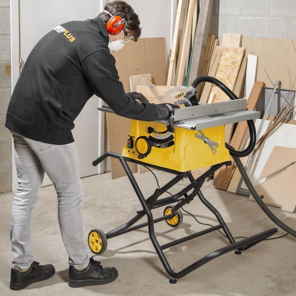 Jūs varat viegli regulēt Ø 250 mm zāģa asmens leņķi un augstumu. Leņķveida žogs un paralēlā vadotne sniedz iespēju veikt ļoti precīzus paralēlus griezumus kokā, kura biezums ir līdz 85 mm, un leņķa griezumus līdz 60 mm dziļumā. Spiediens un zāģa asmens aizsargs garantē jūsu drošību zāģēšanas laikā, un pārslodzes aizsardzība novērš pārkaršanu. Putekļu nosūkšanas izvadu var pievienot putekļsūcējam, lai garantētu tīru un bezputekļiem darba vidi. Pēc lietošanas salieciet galda zāģi.