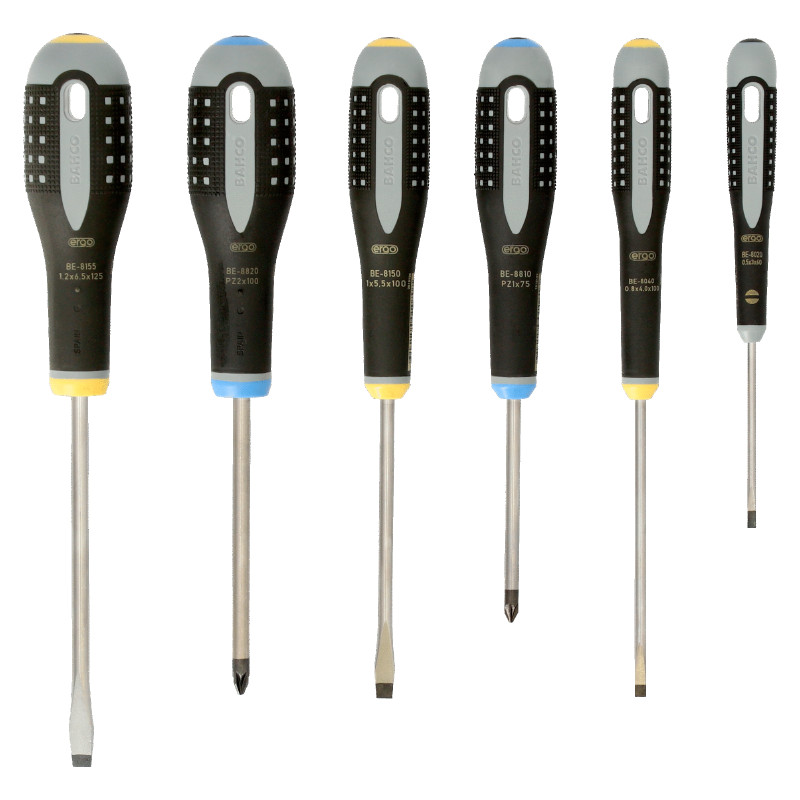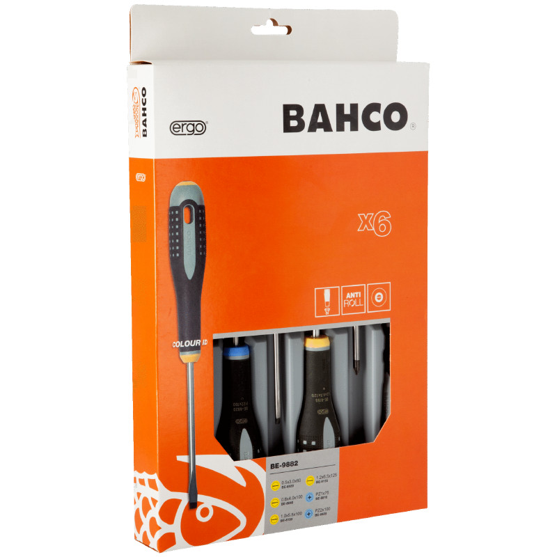 Skrūvgriežu komlekts ERGO™ 6gab., PZ1/2; SL 3,0/4,0/5,5/6,5, BE-9882 BAHCO