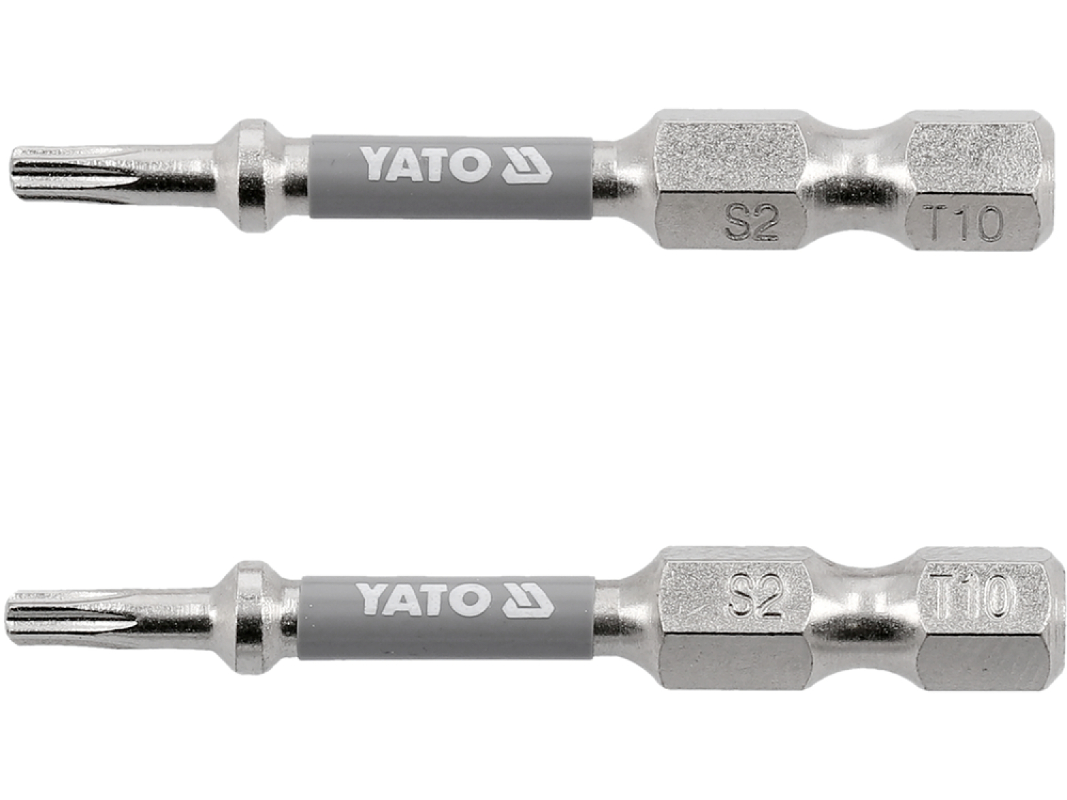SCREWDRIVER BITS 1/4 50MM T10 2 PCS Ni YT-78031 YATO ir augstas kvalitātes skrūvgriežu uzgaļi, kas izgatavoti no S2 tērauda un pārklāti ar niķeli. Šie uzgaļi ir ideāli piemēroti darbiem, kas prasa precīzu un drošu piegādi uz skrūvēm ar Torx tipa galvu.