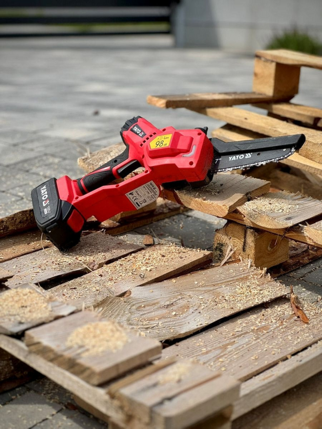 Mini motorzāģis YATO YT-828134 ar bezsuku motoru nodrošina augstu griešanas veiktspēju. Instruments ir paredzēts koku zaru, zaru un kokainu krūmu stublāju griešanai, apvienojot lietošanas ērtumu, jaudu un drošību. Ķēde tiek automātiski ieeļļota, kas paildzina stieņa un ķēdes kalpošanas laiku, turklāt ķēde ir jāasina retāk. Gumijotais roktura pārklājums nodrošina ērtu un drošu satvērienu.