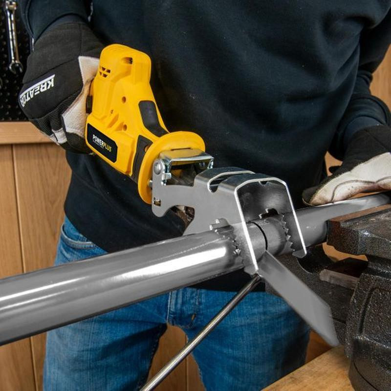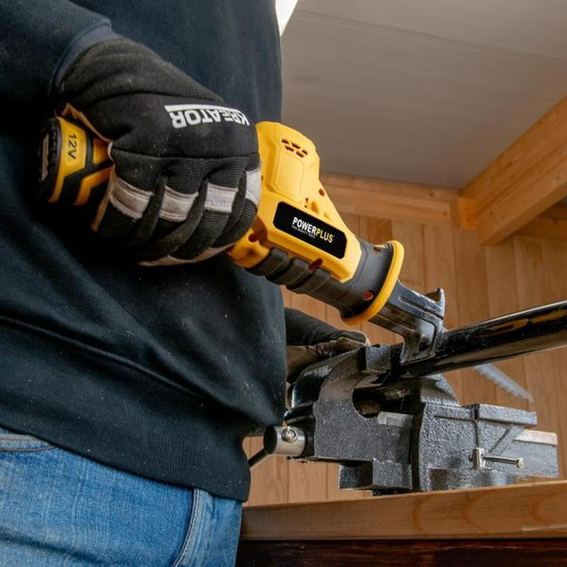 Šis bezvadu 12 V Powerplus virzuļzāģis ir lieliski piemērots vairākiem zāģēšanas projektiem, sākot no cauruļu griešanas līdz koka līstes griešanai. Tas var zāģēt līdz 65 mm kokā, 30 mm plastmasā un 10 mm tēraudā.