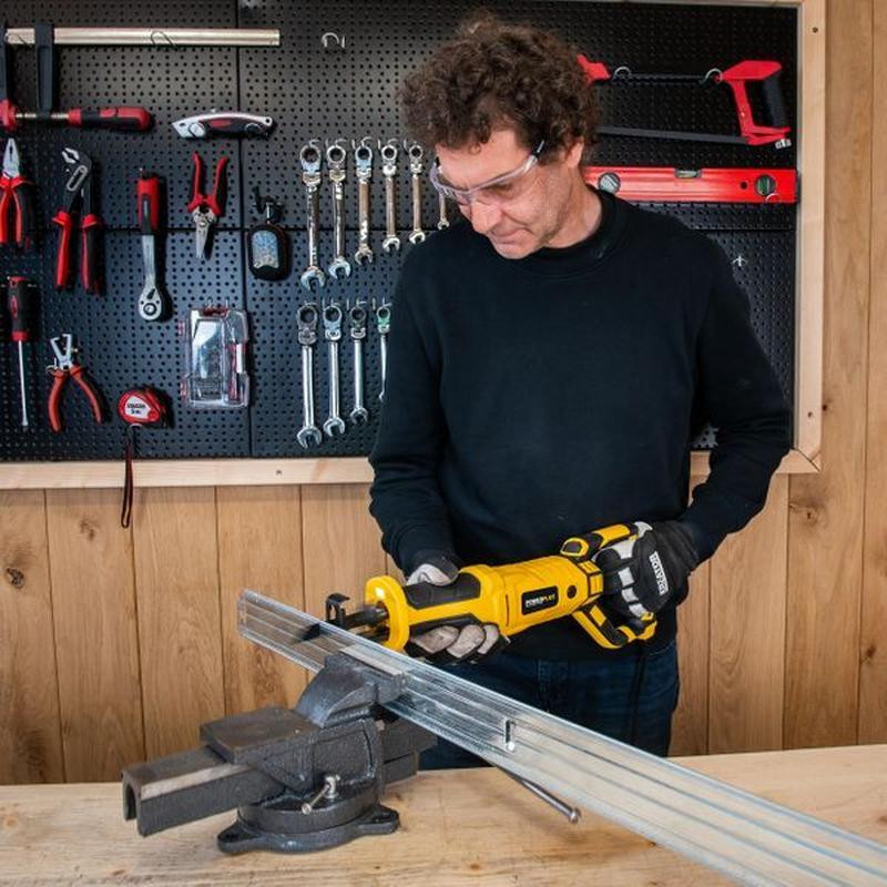 Šis jaudīgais 920 W Powerplus virzuļzāģis ir lieliski piemērots vairākiem zāģēšanas projektiem, sākot no cauruļu griešanas līdz koka līstes griešanai. Tas var zāģēt līdz 150 mm kokā, 100 mm plastmasā un 10 mm tēraudā.