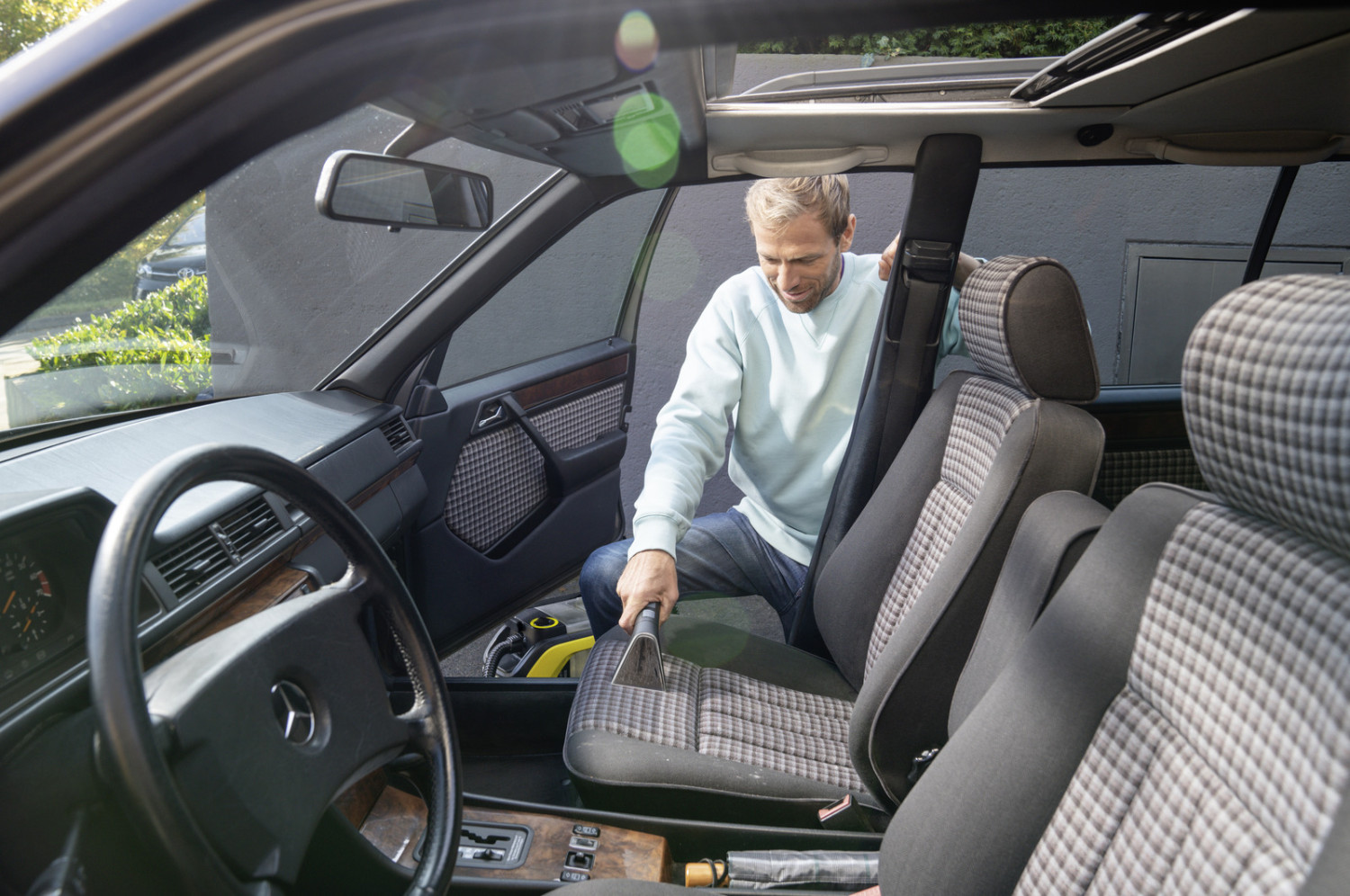 Dziļa audumu tīrīšana ar maksimālu pārvietošanās brīvību: SE 3-18 Compact izsmidzināšanas-ekstrakcijas tīrīšanas iekārta rūpīgi un bez atlikumiem iztīra tekstila virsmas. Kompaktais dizains nodrošina, ka ierīce ir parocīga, bet, pateicoties 18 V Kärcher Battery Power akumulatoram (akumulators un lādētājs iekļauts piegādes komplektācijā), to var izmantot pat tad, ja tuvumā nav kontaktligzdas. Ierīce ļauj transportlīdzekļa salonu iztīrīt tikai 12 līdz 24 minūšu laikā. Jūs vienā mirklī notīrīsiet netīrumus no automašīnu sēdekļiem, grīdas paklājiņiem un bagāžnieka, kā arī dārza mēbeļu polsterējuma – tikpat jaudīgi kā ar mūsu no kontaktligzdas darbināmajām izsmidzināšanas-ekstrakcijas tīrīšanas iekārtām. Garā un elastīgā sūkšanas šļūtene ar iekšējo tīrīšanas līdzekļa šļūteni garantē ērtu lietošanu un fleksibilitāti pat grūti pieejamās vietās. Pat pēc tīrīšanas beigām iekārta jūs pārsteigs ar savu higiēnisko sistēmas skalošanas funkciju, kas iztīra netīrumus no ierīces un šļūtenes, tādējādi novēršot baktēriju un smaku veidošanos. Pilnīgi saskaņā ar moto "tīrs transportlīdzeklis, tīra tīrīšanas ierīce".