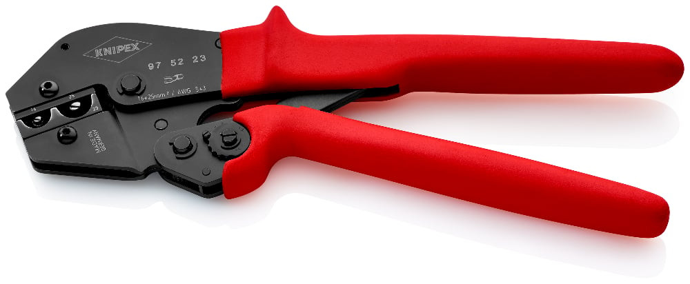 Divu roku darbība vieglai lielu vadītāju diametru krimpēšanai
