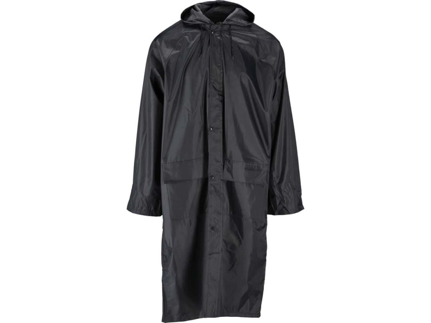 Viegls Vorel lietusmētelis tumši zilā krāsā ar divām lielām kabatām un regulējamu kapuci. Materiāls, kas izgatavots no 100% poliestera ar PVC pārklājumu, ir ūdensizturīgs un nepieļauj gaisa iekļūšanu. Pārmērīga siltuma izvadīšanai šajā lietusmētelī ir ventilācijas atveres aizmugurē un caurums zem padusēm.