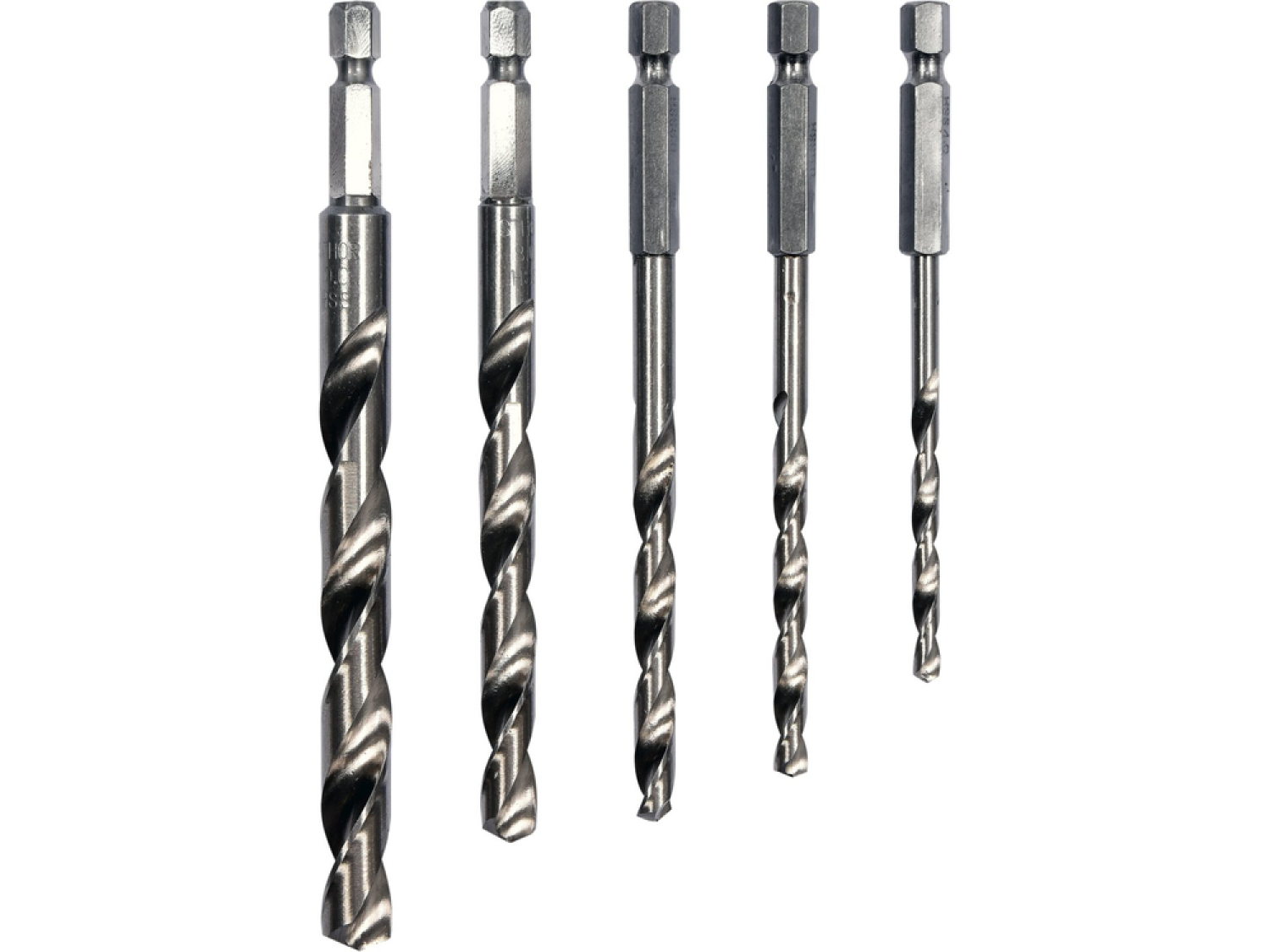 STHOR 21650 metāla urbju komplekts ietver piecus augstas kvalitātes urbus ar sešstūra turētāju. Šie urbji ir izgatavoti no ātrgriezējtērauda (HSS), kas nodrošina efektīvu un precīzu urbumu procesus. Dalīšanas punkts ļauj urbt bez iepriekšējas skrūvēšanas, bet urbumu leņķis ir 135 grādi, kas veicina gludu urbuma sagatavošanu.