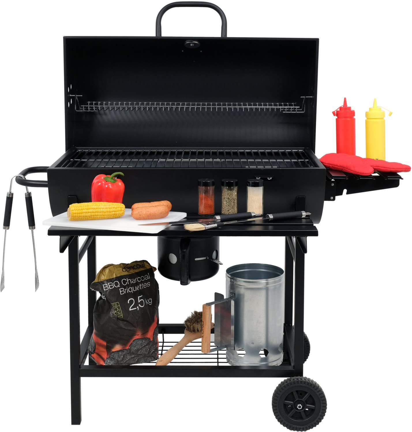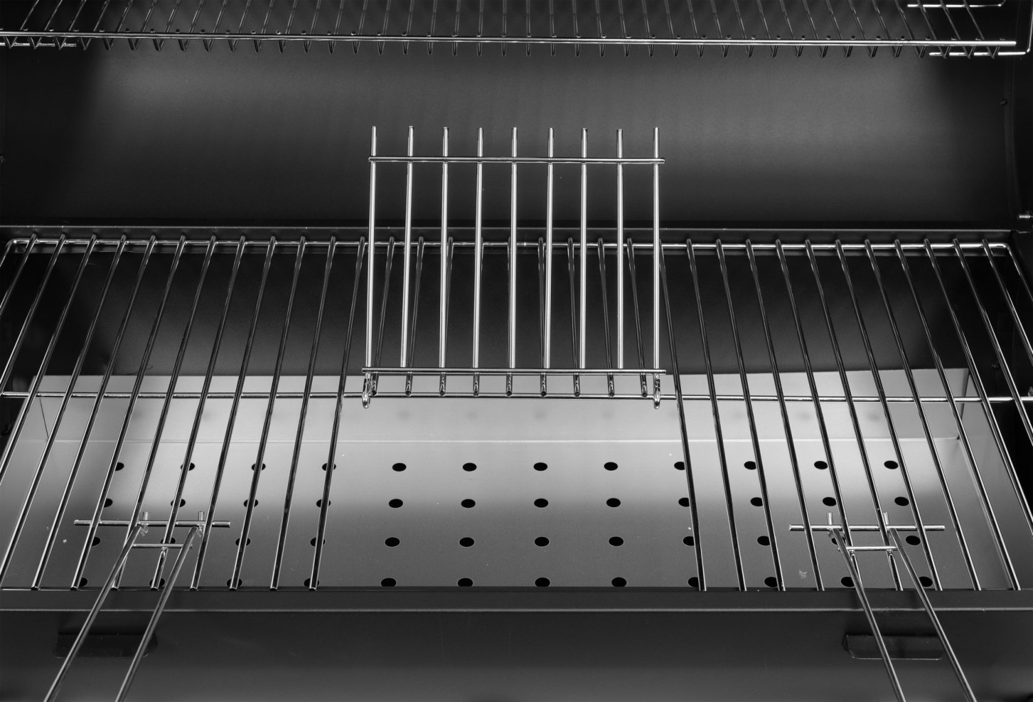 Apakšējais plaukts atvieglos aksesuāru un ogļu uzglabāšanu.