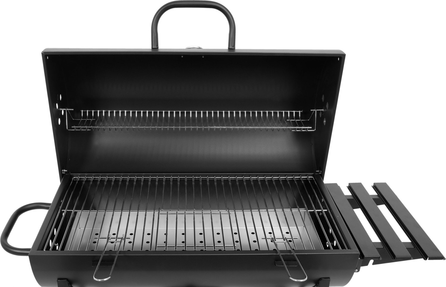 Populārs ogļu grils ar hromētu resti, priekšsildīšanas resti un temperatūras uzturēšanas vāku. Aprīkots ar daudzām ērtībām - cinkota ugunsbedre, pelnu trauks, termometrs un divas saliekamas metāla plaukti. Caurumi bļodā, kas izvietoti ik pēc dažiem centimetriem, nodrošinās labu gaisa plūsmu. To var viegli noņemt un ātri iztīrīt.