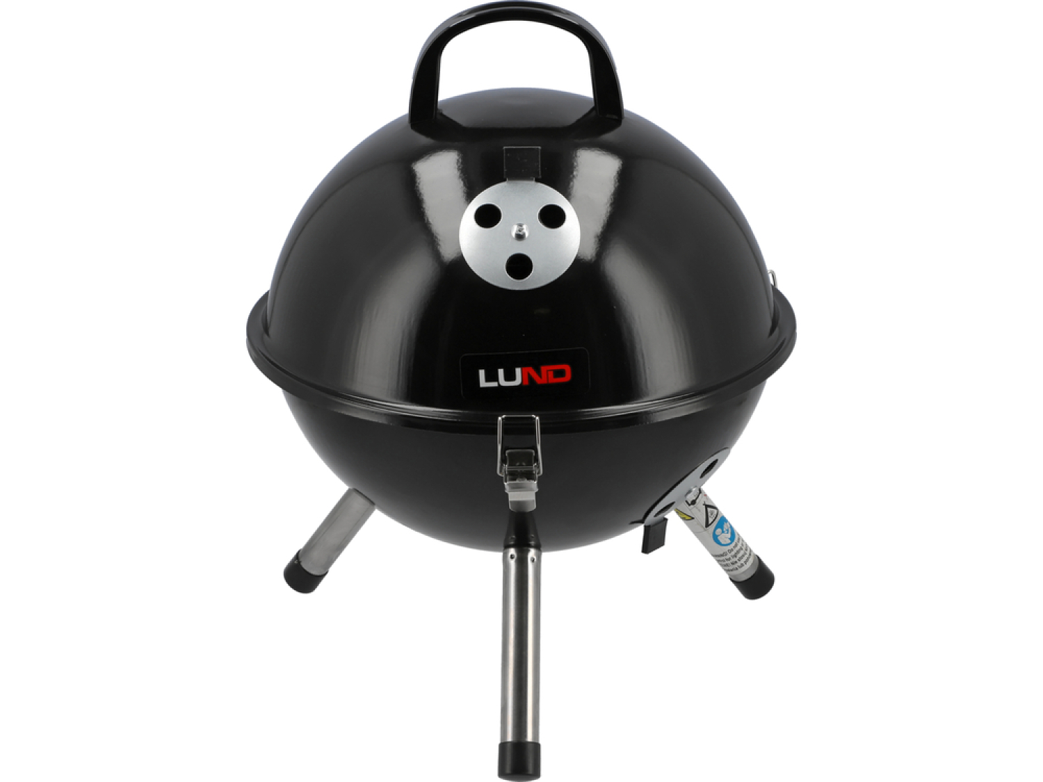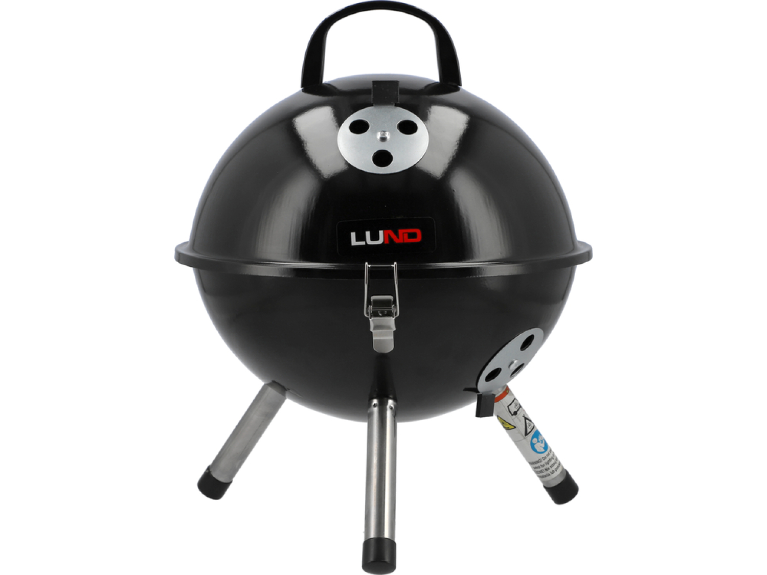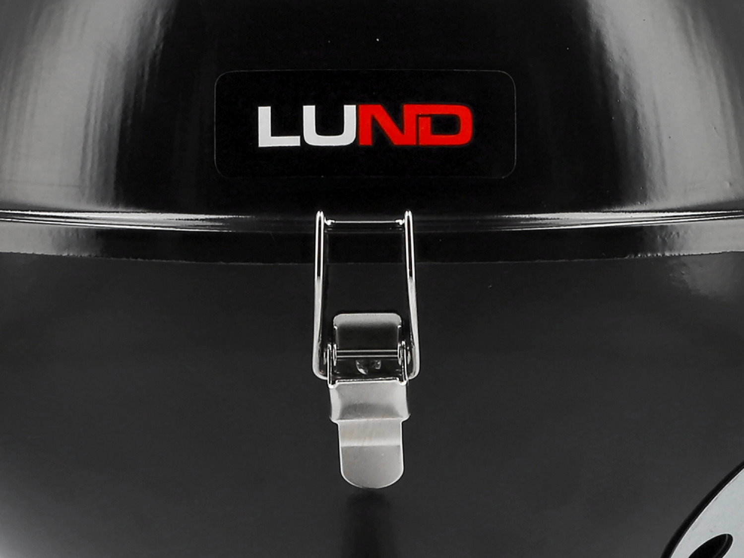 Klasisks LUND 99922 apaļais ceļojumu ogļu grils ar hromētu resti un temperatūru saglabājošu vāku. Tas ir aprīkots ar daudziem papildinājumiem - cinkotu ugunsbedri, atverēm gaisa cirkulācijas regulēšanai, kā arī sprādzēm, lai cieši aizvērtu vāku. Šis grils atbilst visiem drošības standartiem.