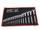 Komplektā ietilpst 17 atslēgas izmēros no 8 līdz 32 mm un izturīga plāksne ar pastiprinātiem caurumiem, kas ļauj to ērti piekārt pie sienas.