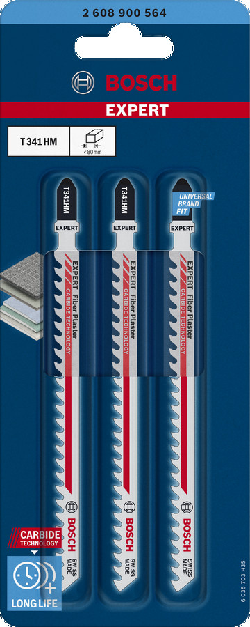 Bosch EXPERT Fiber Plaster: figūrzāģa asmens ir paredzēts atkārtotu griezumu veikšanai visabrazīvākajos materiālos. Tā ir labākā izvēle profesionāļiem, kuriem jāveic smags darbs, piemēram, ģipškartona uzstādīšana, un tas ir pieejams divos dažādos garumos: T141HM maksimālai kontrolei un garākais T341HM labākai sasniedzamībai.