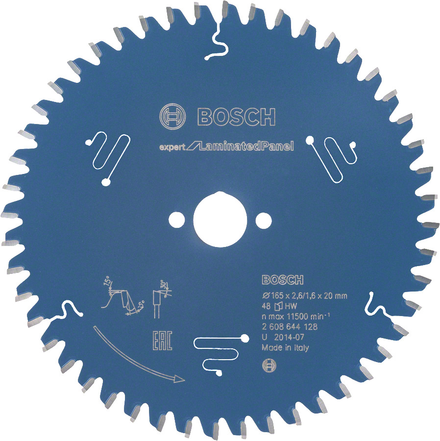 Ekspertu zāģa asmens laminētiem paneļiem ir ATB (Alternatīva augšējā slīpuma) zobu ģeometrija, kas nodrošina tīrus griezumus visos koka materiālos un laminētos paneļos.
