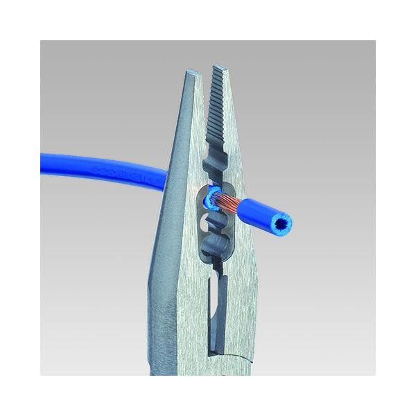 Elektriķu knaibles ar hromētu pārklājumu, rokturi ar daudzkomponentu satvērieniem un integrētu piekļuves punktu. Ideālas knaibles kabeļu darbam. Piemērotas vadu satveršanai un locīšanai. Var griezt vidēji cietus un cietus vadus. Precizitātes griešanas malas papildus indukcijas cietinātas, griešanas malas cietība apmēram 60 HRC. Ar precizitātes atplēšanas caurumiem. Piemērotas vadu galu uzspiešanai. Vanādija elektriskā tērauda, kalti, daudzpakāpju eļļas cietinātas.