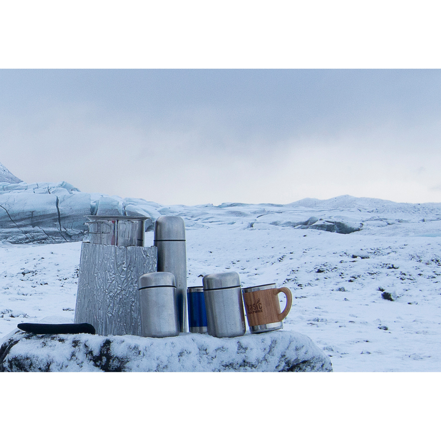Šie pievilcīgie un praktiskie krūzes, jeb beakeri, ir izgatavoti ar nerūsējošā tērauda iekšpusi un plastmasas apvalku. Tie ir aprīkoti ar izturīgu rokturi, neslīdošu gumijas pamatni un cieši pieguļošu vāku. Nav piemēroti mazgāšanai trauku mazgājamajā mašīnā un nedrīkst pilnībā iegremdēt ūdenī. Ideāli piemēroti ilgstošai aukstu vai siltu dzērienu baudīšanai brīvā dabā, darbā vai kempingā.