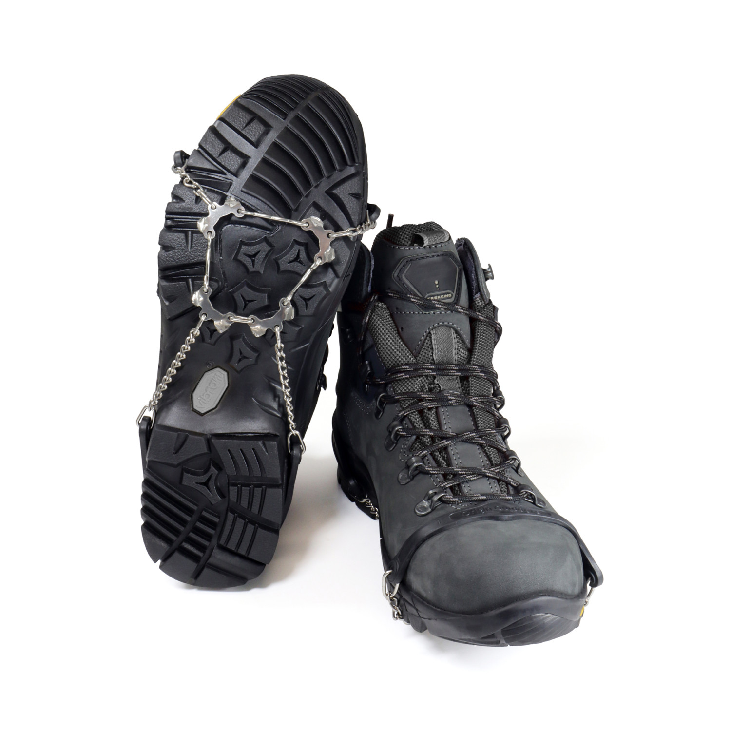 Ļoti vieglās un kompakta dizaina apavu ķēdes nodrošina drošu saķeri uz melnā ledus un sniegotām takām līdzena reljefa apstākļos. Aprīkotas ar efektīvām naglām un izcilu izstrādājumu kvalitāti. Pateicoties elastomēra gumijai, tās var uzvilkt un novilkt gandrīz jebkuriem apaviem dažu sekunžu laikā. Iekļauta praktiska un izturīga transporta soma, kas viegli iederas jebkurā somā vai mugursomā.