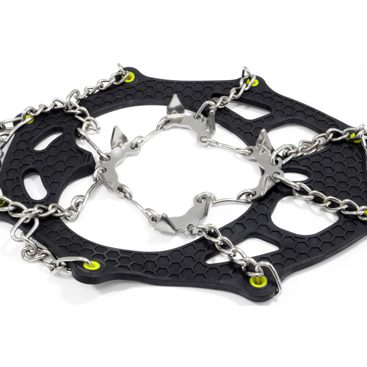 'Grip' Professional sniega ķēdes ir izstrādātas prasīgai lietošanai. Ļoti vieglais svars nodrošina augstu valkāšanas komfortu. Papildu iebūvētie pastiprinājuma gredzeni piedāvā maksimālu stabilitāti un izturību. Šūnu struktūra ļauj ekstremālu izturību. Ar šīm apavu ķēdēm jūs iegūsiet drošu saķeri uz sniega, ledus vai akmeņainas virsmas. Tās ir piemērotas visiem apavu veidiem un ir ideāls pavadonis aukstos un slidenu laika apstākļos. Ļoti labi izgatavotās ķēdes ar 13 uzgaļiem var uzlikt un novilkt dažu sekunžu laikā, pateicoties elastomēra gumijai, un tās viegli var uzglabāt praktiskajā un izturīgajā cietajā somā jebkurā somā vai mugursomā.