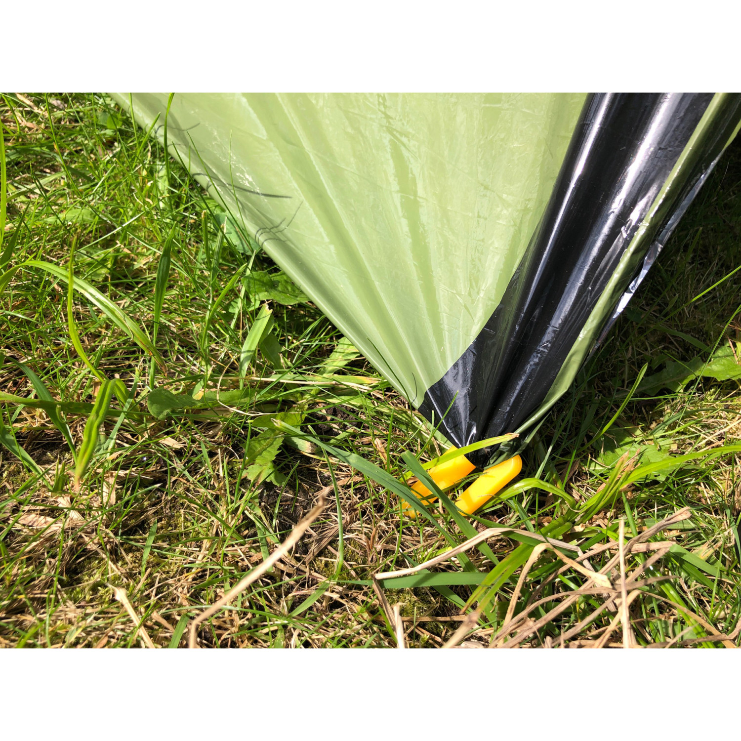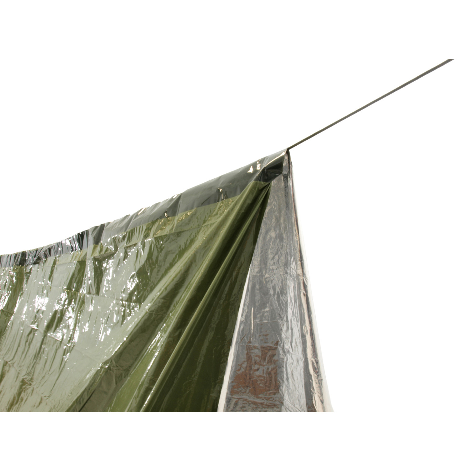 Izdzīvošanas telts ir īpaši izstrādāta pārgājieniem, bushcrafting un ārkārtas situācijām. Neatkarīgi no tā, vai dodaties pārgājienā, kempingā vai trekkingā, telts pasargā no hipotermijas un sasalšanas, pateicoties tās iekšējai atstarojošajai virsmai. Telts dizains iztur visekstrēmākos laika apstākļus, piemēram, vēju, lietu, vētru vai aukstumu. Ar vairāk nekā divu metru garumu tajā var iekļauties cilvēki visos augumos. Ar 6 m garo paracord, telti var lieliski nostiprināt. Ar integrētajām metāla acīm telti var piestiprināt pie zemes ar komplektā iekļautajiem nagliņām. Turklāt telti var izmantot arī kā bivy maisu vai plēvi. Tā ir viegla un to var ērti salocīt, lai ietaupītu vietu. Komplektā iekļauts arī iepakojuma maisiņš.