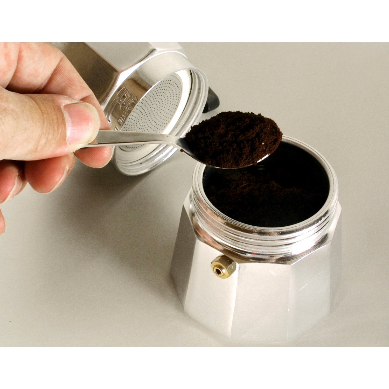 Klasiskā espresso kafijas automāts. Ar alumīnija korpusu un pasaulē atzītu stilu. Piemērots visām plītīm (izņemot indukcijas!). Nav mazgājams trauku mazgājamajā mašīnā.