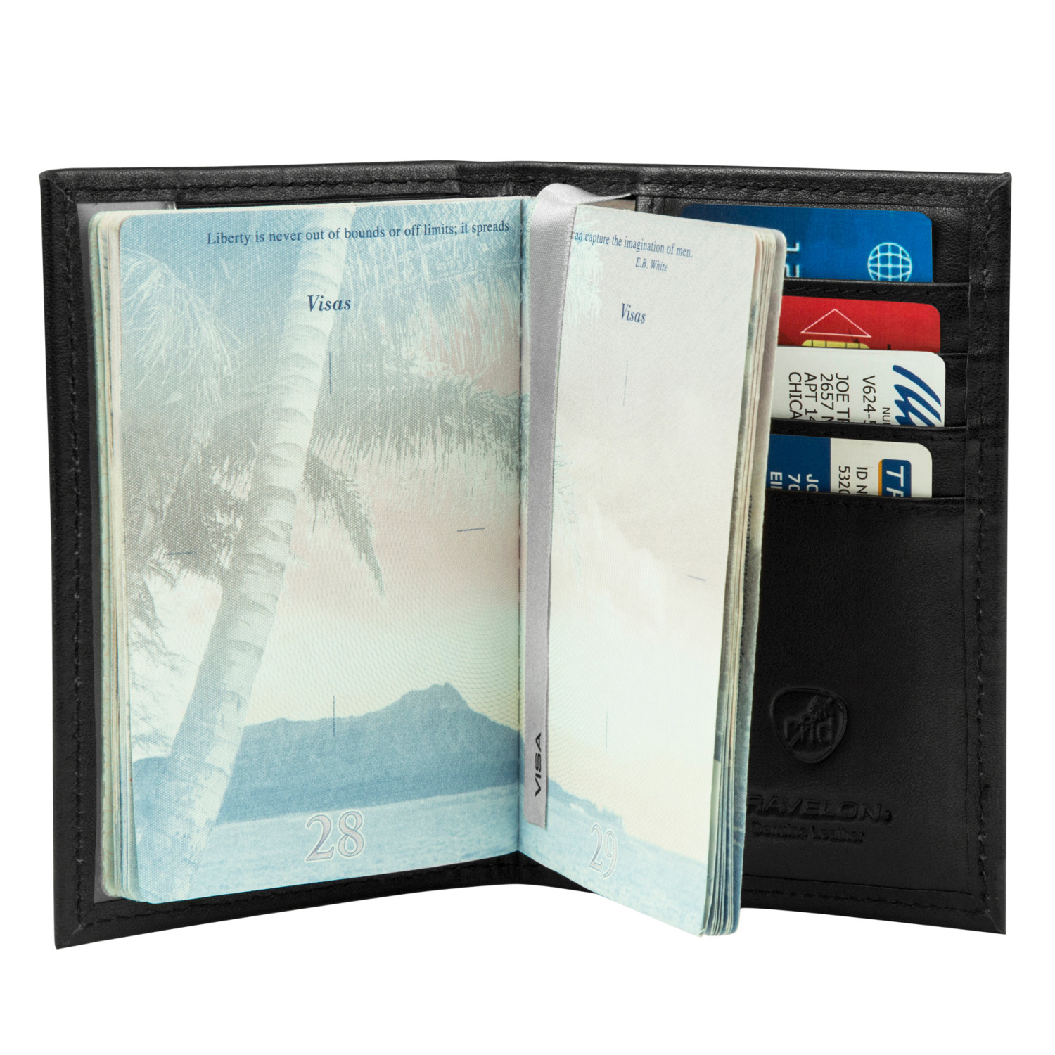 RFID aizsargāts un ūdensnecaurlaidīgs maciņš drošai pases un kredītkaršu glabāšanai. Iekļauj vairākas karšu kabatas un skatīšanās logu, kas ļauj pārbaudīt pasi vai identitātes karti, to neizņemot.