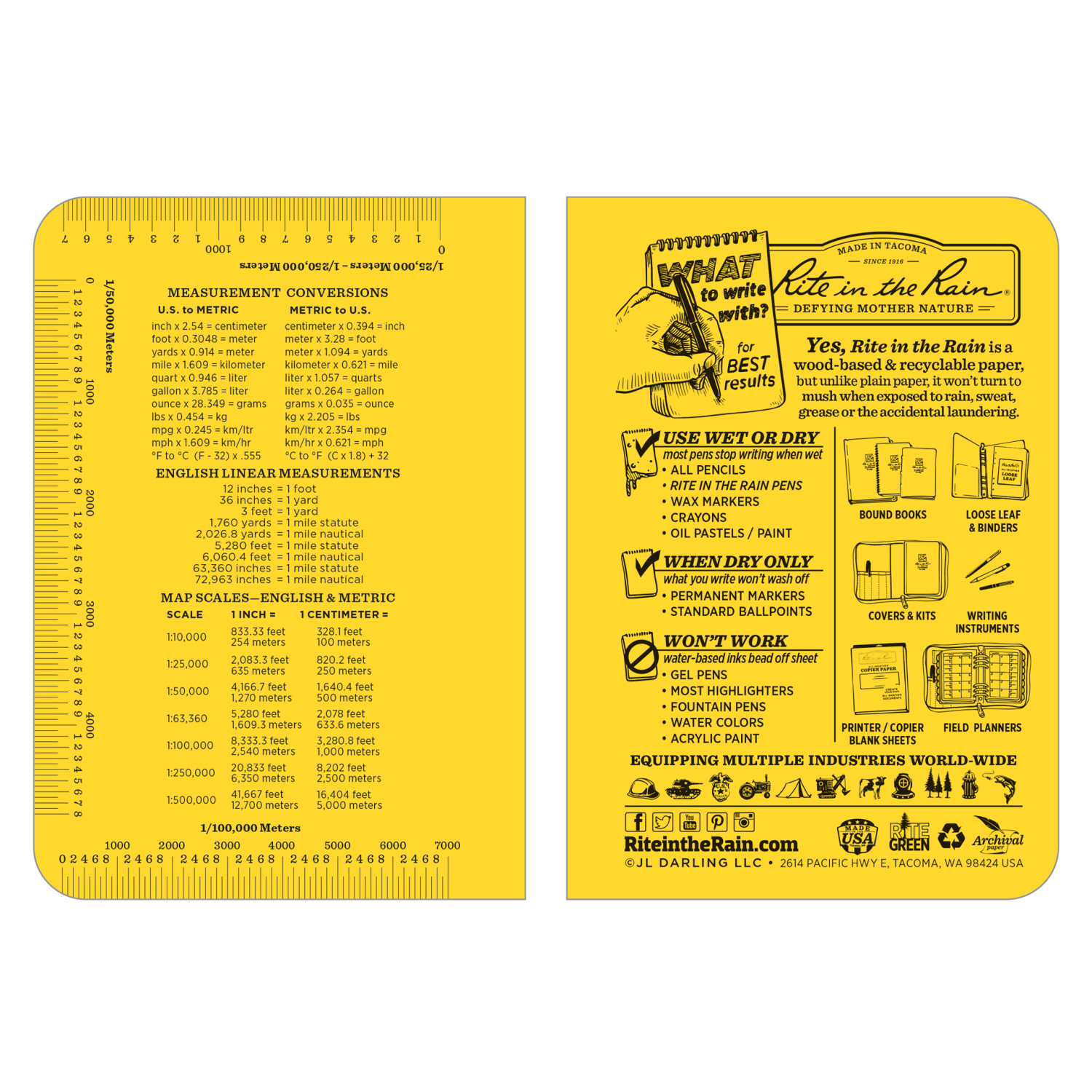 Šie ērti kabatas izmēra Field-Flex burtnīcas ir ideāli piemērotas, lai tās varētu ievietot šaurās vietās, taču joprojām ir pietiekami lielas, lai saglabātu visus svarīgos datus; vai tas būtu orientieris, koordinātes, dzīvnieku novērojums vai telefona numurs, jūs varat uzticēties šīm mazajām piezīmju grāmatiņām, lai saglabātu savākto informāciju. Perfekti saistītās grāmatas izmanto tikai visizturīgākās līmes. Vāks satur plašas pārveidošanas tabulas izmēriem un svaram, kā arī dimensiju skalas collās un cm. Ar Field-Flex vāka materiālu.