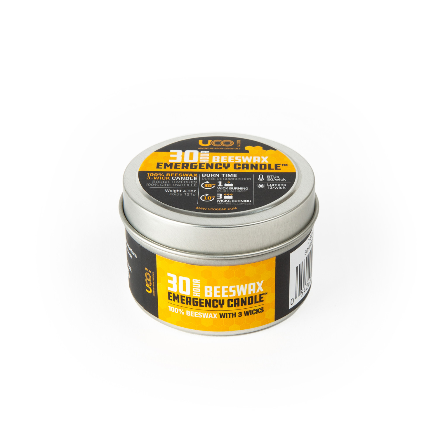 Avārijas svece nodrošina ļoti ilgu degšanas laiku, padarot to ideālu avārijas situācijām, pārgājieniem vai āra aktivitātēm. Svece ar trim vītnēm ir pieejama praktiskā metāla kastē ar iebūvētu sērkociņu nodalījumu.
