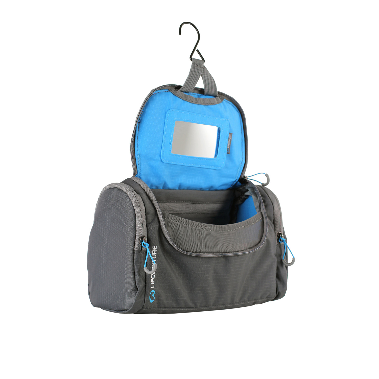 Šī mazgāšanas soma ir aprīkota ar galveno nodalījumu. Divi ārējie un viens iekšējais kabata ar rāvējslēdzēju, noņemams spogulis un āķis pakarināšanai.
