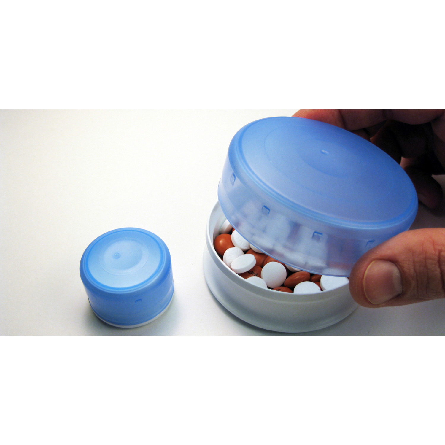 Trīs kastīšu komplekts, izgatavots no pārtikas droša plastmasas. Viedais vāks cieši aizveras un to var atvērt, viegli nospiežot no abām pusēm. Ideāli piemērots lietošanai ar vienu roku. Lieliski ceļojumiem, lai paņemtu līdzi visus sīkumus, piemēram, tabletes, pogas, konfektes utt. Ūdensizturīgs, taču nav paredzēts šķidrumu transportēšanai.