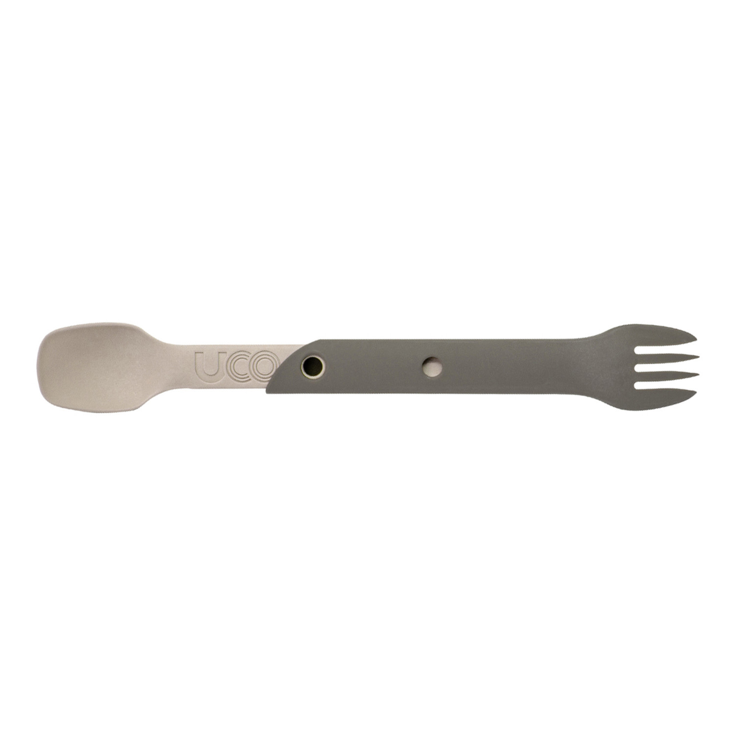 Praktisks galda piederumu komplekts, ko var kombinēt trīs variantos (nazis, dakša, karote). Izvelkams līdz paplašinātai garumam, ideāli piemērots dziļiem pārtikas traukiem. Viena caurums ļauj piestiprināt spork pie mugursomas vai somas. Mazgājams trauku mazgājamajā mašīnā un aprīkots ar stiprinājuma cilpu.
