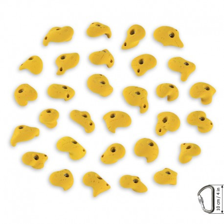 Kāpšanas sienas aizķeres "rokturīši". Īpaši piemērota bērna rokai.Kāpšanas sienas aizķeres ērti "rokturīši". Īpaši piemērota bērna rokai. Lieliski derēs gan mājas kāpšanas sienai, gan arī kāpšanas zālēm, kur tās var uzstādīt gan uz vertikālas sienas, gan arī uz sienas negatīvā leņķī, vai ar pārkari. Ar sīm aizķerēm ir iespējams izveidot maršrutu no 5a līdz pat 7c grūtības pakāpei. Krāsa: Oranža Tehnaloģijas: Kopš 2010 gada aizķerēs tiek izmantoti nerūsējoša tērauda skrūvju ''iekšiņas'', līdz ar to samazinot iekšas koroziju un paildzinot aizķeres kalpošanas laiku. HRT kompānija izmanto tehnaloģijas, kas padara aizķeres virsmu nodilumizturīgāku, paildzinot aizķeru virsmas mūžu. HRT aizķeres ar šo tehnaloģiju padara aizķeru virsmu raupjāku, un pēc iespējas līdzīgāku īstām klintīm. (HRT SURFACE HARDENING TECHNOLOGY) Prēmium klases materiāli. Vairāku gadu garumā tika veikti pētījumi, un tika izstrādāta jauna poliuritāna formula, kurai ir daudz labāki rādītāji nekā materiāliem, no kā parasti tiek izgatavotas aizķeres.