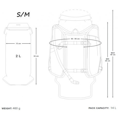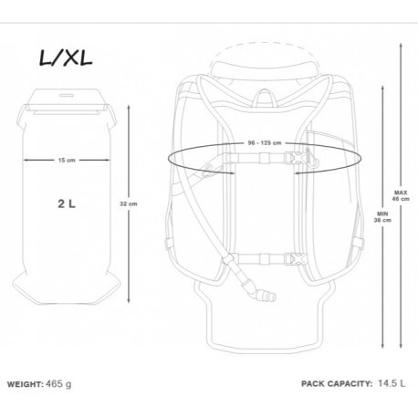 | Materiāls: | Lightweight, breathable 3D mesh construction 70D lightweight ripstop with TPU waterproof coating Internal lycra stash pocket Stretch mesh rear side pockets Quick release buckles incorporating magnetic hydration hose clip |