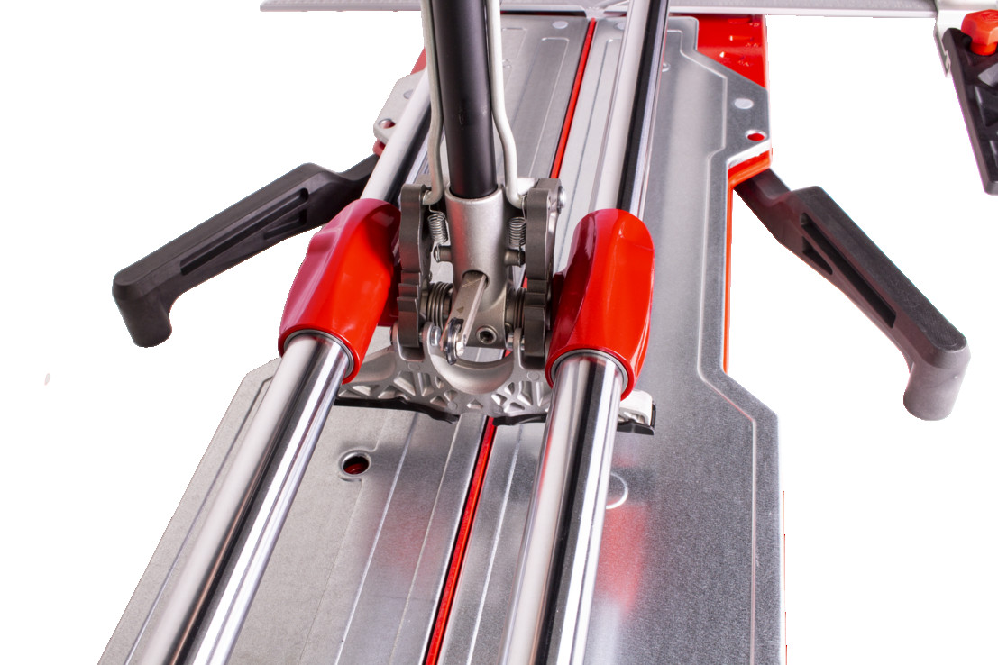 TX-MAX profesionālie manuālie griezēji ir ideāli piemēroti intensīvai visdažādāko keramikas flīžu griešanai. Pateicoties augstas veiktspējas MULTIPOINT separatoram un rotējošajam kvadrātveida sistēmai, TX-MAX modeļi ļauj viegli un ātri veikt leņķiskus griezumus (no 0º līdz 45º), īpaši porcelāna akmens flīzēm (AIa / BIa). To augstā separācijas jauda (līdz 1200 kg) nodrošina izcilu veiktspēju ar ekstrudētām akmens flīzēm. 30 mm diametra tērauda vadotnes un galva ar paplašinātiem alumīnija slīdņiem nodrošina iespaidīgu struktūras izturību, maksimāli izmantojot modeļus ar augstāko griešanas jaudu (TX-1020 MAX un TX-1250 MAX). Uzlabotā popu pozīcija palielina redzamību skrāpēšanas un separācijas laikā, un satvērējs ir aprīkots ar aizsargājošu, noņemamu elementu, kas ļauj strādāt ar visdelikātākajām virsmām, neriskējot atstāt pēdas. Separācijas mehānisms ļauj izmantot griezēju ar vienu roku, atvieglojot satvērēja bloķēšanu un atbloķēšanu, izmantojot ratchet un izsistēmu. Šī sistēma palielina darba efektivitāti gan plānu, gan biezāku materiālu griešanā (no 3 līdz 21 mm bez aizsarga un līdz 19 mm ar aizsargu, kas iekļauts komplektā). Papildus peldošās galda sistēmai, 710 un 1020 modeļi ir aprīkoti ar divām papildu sānu rokām, lai palielinātu atbalsta virsmu lielformāta flīzēm. 1250 modelim ir 4 rokas (divas katrā pusē). Visi TX-MAX modeļi ietver sānu apstāšanos, lai mērītu un bloķētu atkārtotus šaurus griezumus un sloksnes, kā arī divas auklas (8 mm un 22 mm EXTREME) un tradicionālo somu. TX-MAX manuālie griezēji ir saderīgi ar visu RUBI PLUS auklu klāstu. TX-1250 MAX modelis ietver, papildus somai, rokturi un riteņus, lai atvieglotu tā pārvietošanu darba vietā. * Ir daži keramikas materiāli ar biezumu virs 15 mm, kuriem, ņemot vērā to fiziskās īpašības, iespējamo iekšējo spriedzi vai apdari, var būt grūtības ar manuālu griešanu. Ieteicams veikt dažus paraugu griezumus, lai noteiktu produkta saderību.