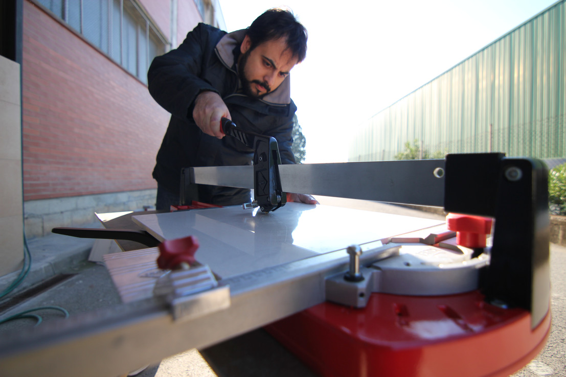 RUBI piedāvā TP-S manuālos flīžu griezējus, kas ir ideāli piemēroti intensīvai darbībai ar jebkura veida keramikas flīzēm. Šie griezēji ir īpaši izstrādāti porcelāna flīzēm (BIa tips) un ir aprīkoti ar izturīgu monoguida sistēmu, kas nodrošina ilgu kalpošanas laiku. Ergonomiskais rokturis ir pielāgots darbības stilam, un tam ir atsperes mehānisms ar 2204.6 lbs griešanas jaudu, kas ļauj griezt flīzes ar biezumu no 13/64 in. līdz 25/32 in. TP-S flīžu griezēji ir viegli lietojami un nodrošina profesionālu flīžu uzstādītāju augstāku darba ātrumu. Mobilais atsperes mehānisms garantē augstas kvalitātes diagonālos un leņķiskos griezumus. Visi TP-S flīžu griezēji ir aprīkoti ar centrālo pivot kvadrātu, kas ļauj ātri un precīzi izmērīt leņķiskos griezumus. Pateicoties sānu apstāšanās mehānismam, flīžu uzstādītājs var viegli veikt atkārtotus griezumus ar maksimālu precizitāti. RUBI TP-S flīžu griezēji ir izgatavoti ar augstas izturības divslāņu alumīnija pamatni, kas absorbē triecienus, un sānu atbalstiem lielām flīzēm. Atšķirībā no TP-T flīžu griezēja, šis darbojas pozīcijā, kas līdzīga dubultā vadītāja griezējiem, proti, priekšā mašīnai. TP-S keramikas flīžu griezēji strādā ar 7/8 in. griešanas riteni, kas izgatavots no ilgmūžīga volframa karbīda. Tas ļauj pielāgoties katram materiālam ar ļoti daudzpusīgu un efektīvu griešanas riteņa diametru. Šīs īpašības padara TP-S flīžu griezējus par viegli lietojamām, izturīgām un vieglām mašīnām. TP-S flīžu griezējiem nav nepieciešama liela apkope vai eļļošana, jo vadītāji neprasa eļļošanu.