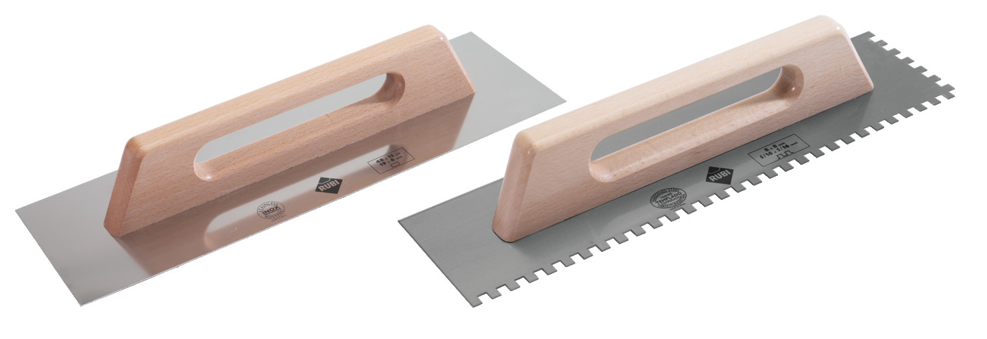 RUBI 19" (48 cm) slēgtais koka roktura tērauda lāpstiņa ir izstrādāta ar augstas izturības tērauda plāksni, kas nodrošina aizsardzību pret koroziju ar bezkrāsainu laku (STEEL). Pieejami arī modeļi ar īpašu nerūsējošā tērauda plāksni (INOX). Visiem RUBI lāpstiņām un ķemēm raksturīga ideāla plāksnes plakne. Koka rokturi piedāvā profesionālajiem keramikas flīžu meistariem tradicionālu rokturi ar dabīgā koka maigo pieskārienu, pateicoties pilnīgai frēzēšanas, slīpēšanas un lakošanas procesam. Slēgtais rokturis nodrošina simetrisku instrumentu, ko ērti var izmantot gan labroka, gan kreisroka meistari, kā arī ļauj vieglāk kontrolēt un manipulēt ar instrumentu. Asmens un roktura savienojums ir izgatavots ar nerūsējošā tērauda skrūvēm, kas nodrošina instrumenta ilgstošāku kalpošanu. RUBI lāpstiņu un ķemju klāsts izceļas ar plašu modeļu un zobu izmēru izvēli. 20 x 20 mm kvadrātveida zobs ir izstrādāts, lai dozētu cementācijas līmes keramikas flīzēm nevienmērīgās grīdās. Šis zoba izmērs ļauj iegūt lielāku saķeres materiāla biezumu un nodrošina pareizu keramikas flīžu mitrināšanu, kas ir būtisks faktors to pareizai pielipšanai. Uzklājot līmes keramikas flīžu uzstādīšanai, vienmēr jāņem vērā katra ražotāja atvēršanas un pielāgošanas laiki. RUBI 48 cm lāpstiņas un ķemmes ir ideālas lielformāta keramikas flīžu uzstādīšanai, jo ar vienu uzklāšanu varam nosegt plašākas darba virsmas. RUBI zīmols ir pazīstams ar savu izturību un instrumentu kvalitāti. Vairāk nekā 65 gadus RUBI ražo tikai augstas izturības un izturības produktus, lai nodrošinātu labāko veiktspēju vissmagākajos darba apstākļos un pielāgotos katra tirgus prasībām.