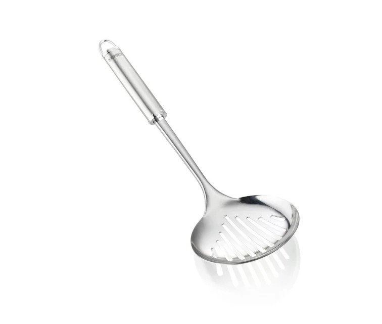 Nerūsējošais tērauds sniedz patīkamu stabilitāti, kā arī piederumiem ir integrēta cilpiņa pakarināšanai kas lieliski saderēs kopā ar Leifheit virtuves piederumu turētāju.