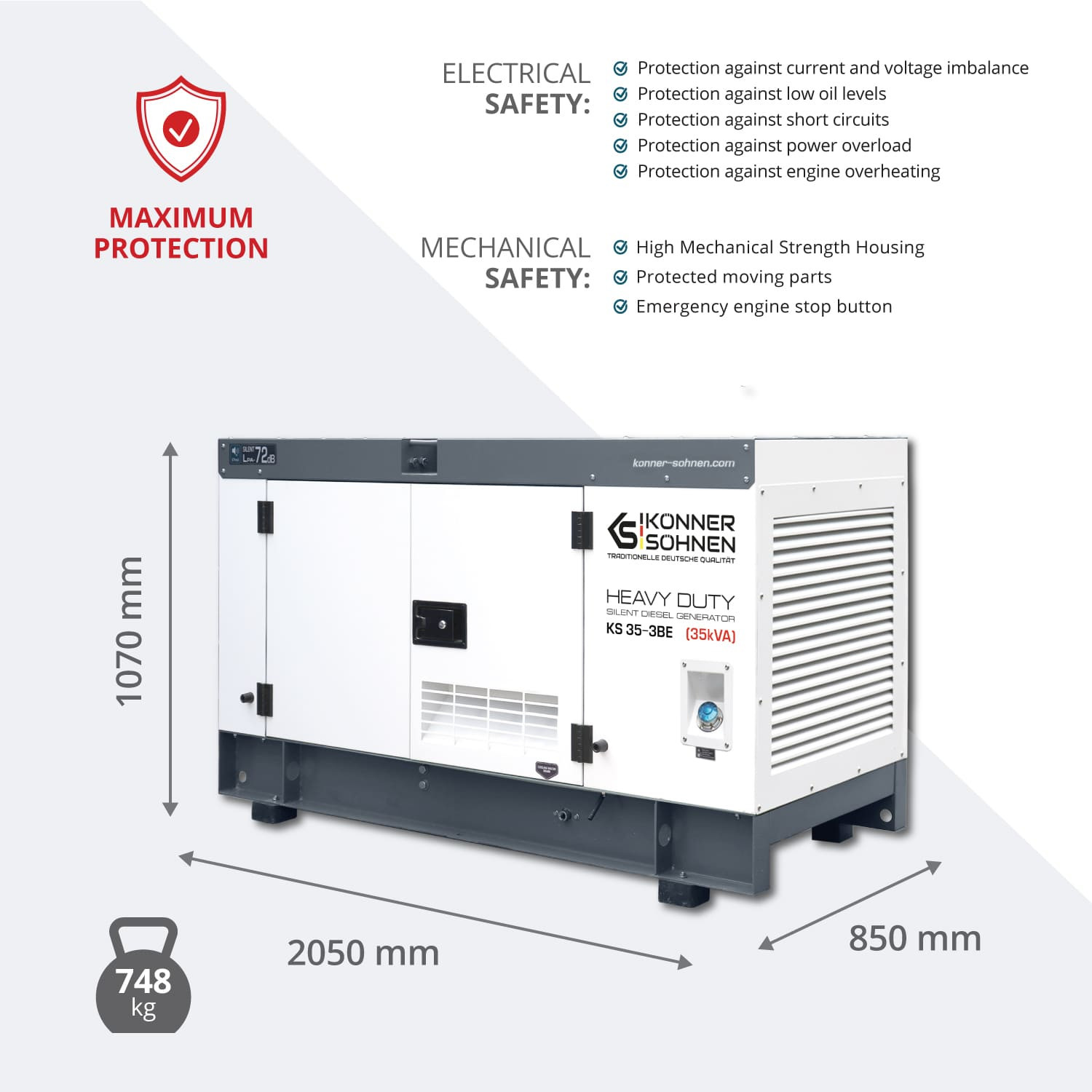 Tas viss nodrošina iekārtu ilgu kalpošanas laiku un nepārtrauktu darbību. Pat vissarežģītākajos apstākļos Könner & Söhnen spēkstacijas darbosies stabili un uzticami, nodrošinot nepārtrauktu barošanu ar plašu jaudu diapazonu, ļaujot izvēlēties optimālu risinājumu dažādām iekārtām un to enerģijas prasībām. Tas padara tos par vispiemērotāko risinājumu tādām nozarēm kā ražošana, lauksaimniecība, būvniecība, veselības aprūpe, kā arī civilā un kritiskā infrastruktūra.