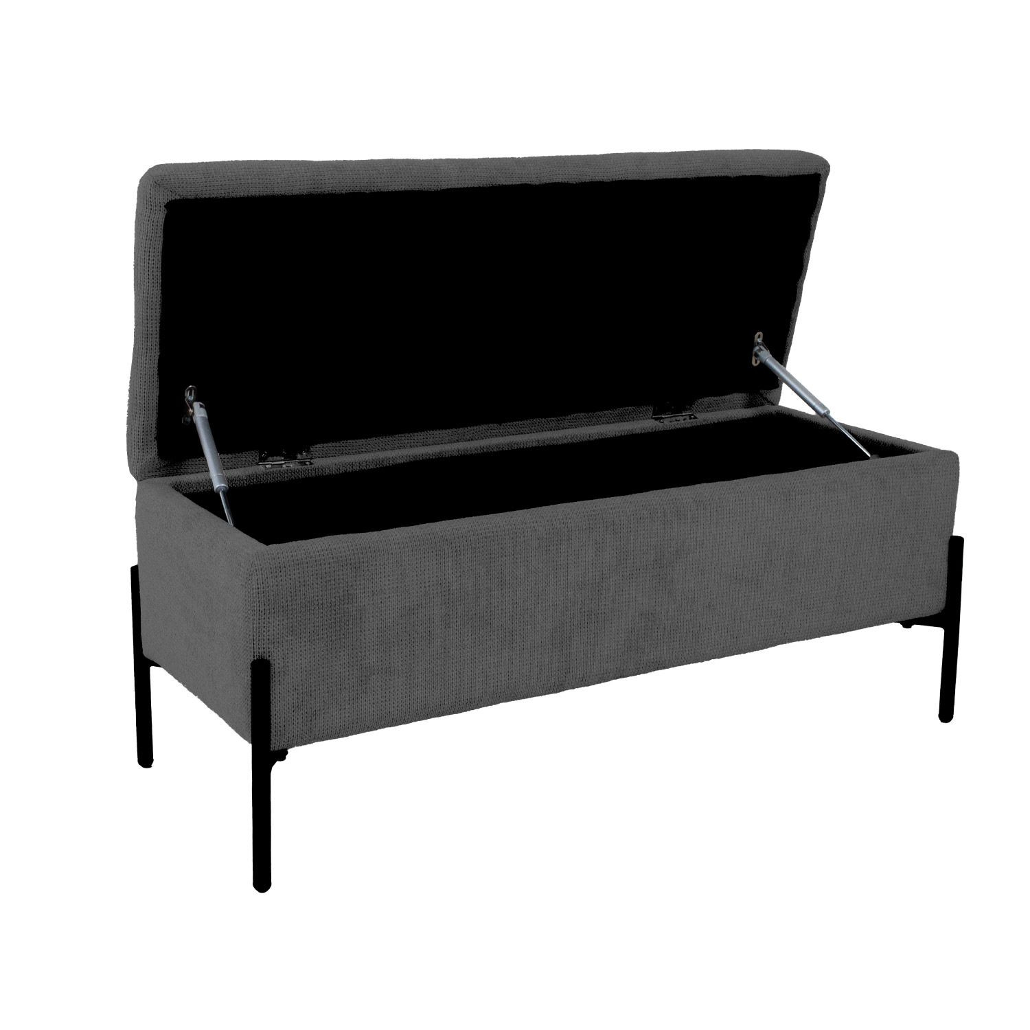 Sols RORI ar uzglabāšanas kasti 95x35xH41cm, pelēka. Sola sēdeklis un rāmis ir polsterēti un pārklāti ar poliestera audumu. Sola kājas ir izgatavotas no metāla un pārklātas ar melnu pulverkrāsojumu. Uzglabāšanas kastes dziļums ir 18 cm.