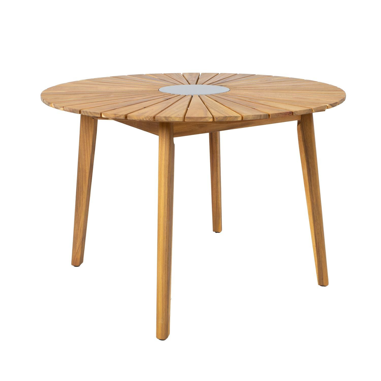 Galds ir izgatavots no akācijas koka un pārklāts ar tīkkoka krāsas koksnes konservantu eļļu.