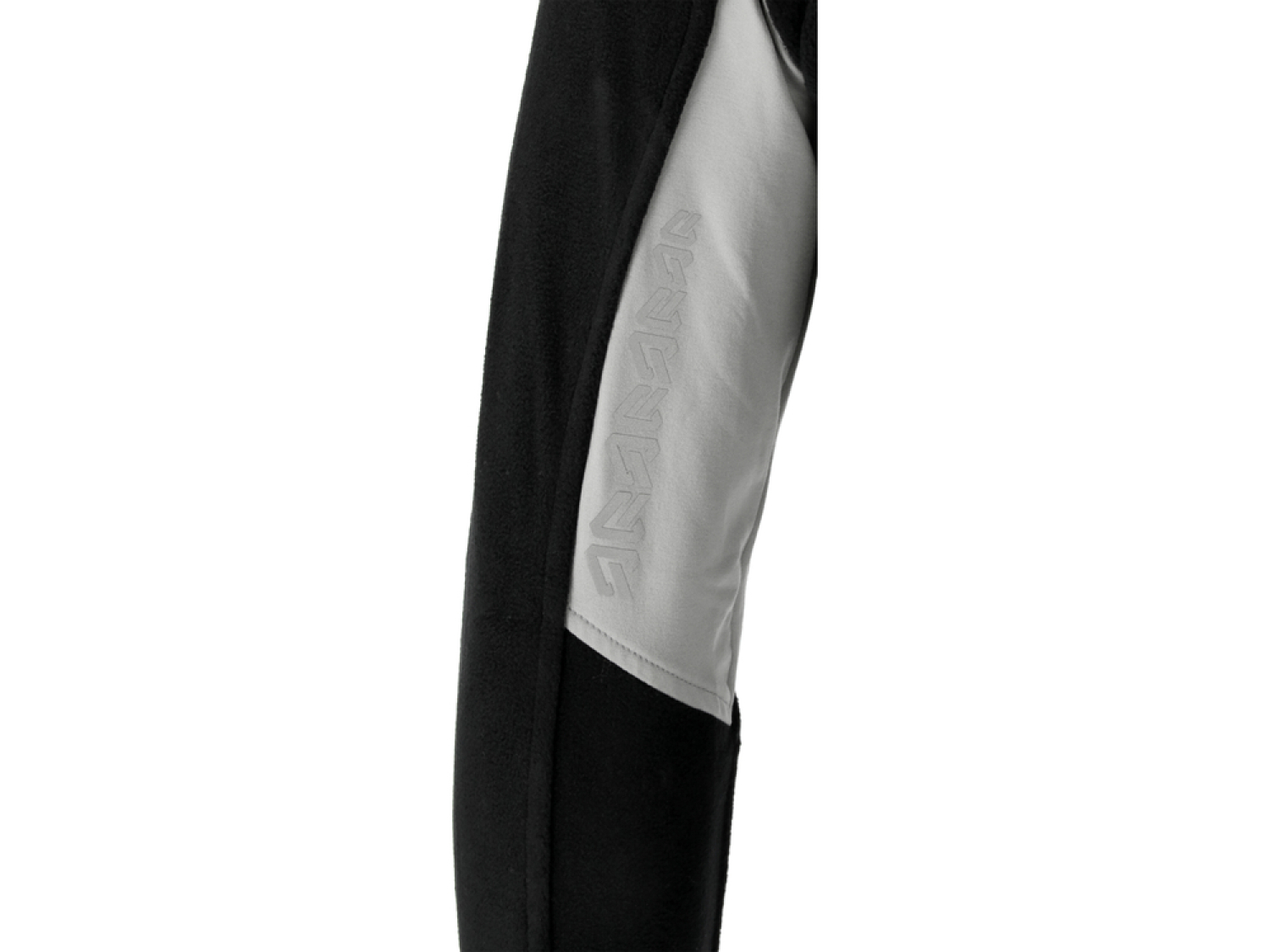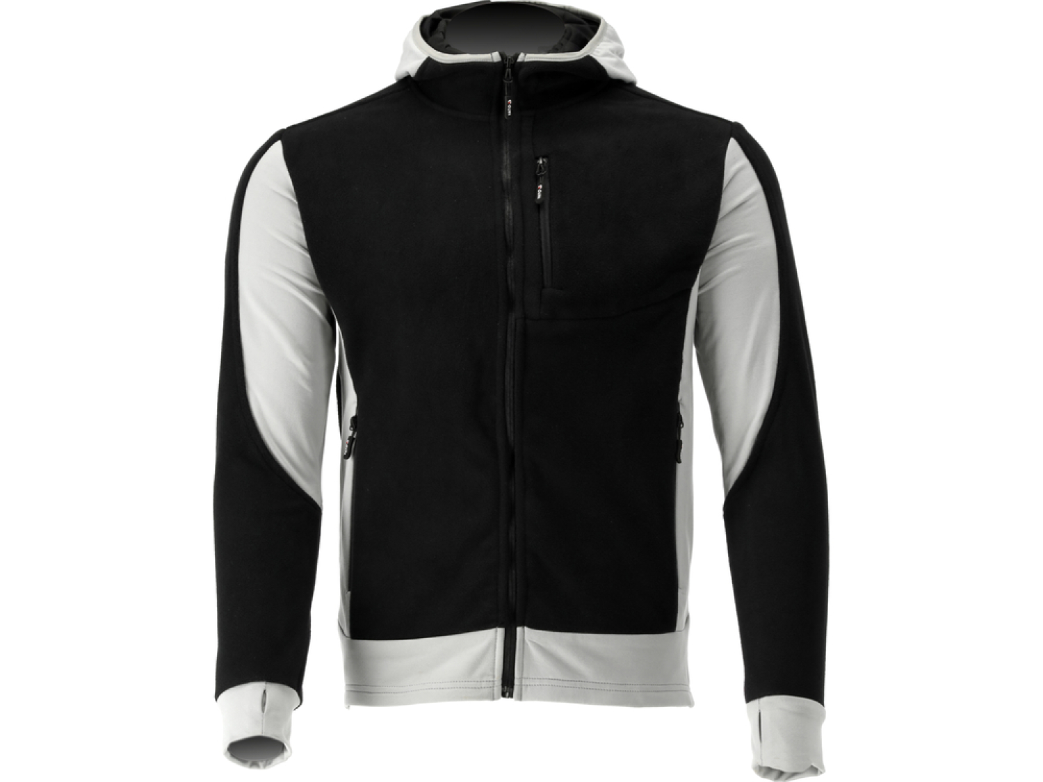 • Divvirzienu stiept audums sānos, zem rokām un daļēji uz piedurknēm samazina diskomfortu, kas raksturīgs tradicionālām flīsa jakām, piemēram, veicot ķermeņa pagriezienus vai strādājot ar rokām virs galvas. Tas arī nodrošina labāku gaisa cirkulāciju, tādējādi mazāk svīstot, īpaši zem rokām.