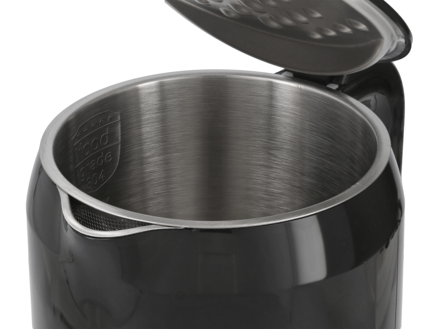 Tējkanna ir aprīkota ar ērti rotējošu 360° pamatni, automātisko izslēgšanos un pārkaršanas aizsardzību, nodrošinot papildu drošību. Lielā atvere atvieglo ūdens ielešanu un tīrīšanu, savukārt noņemamais sietiņš nodrošina tīru un veselīgu ūdeni.