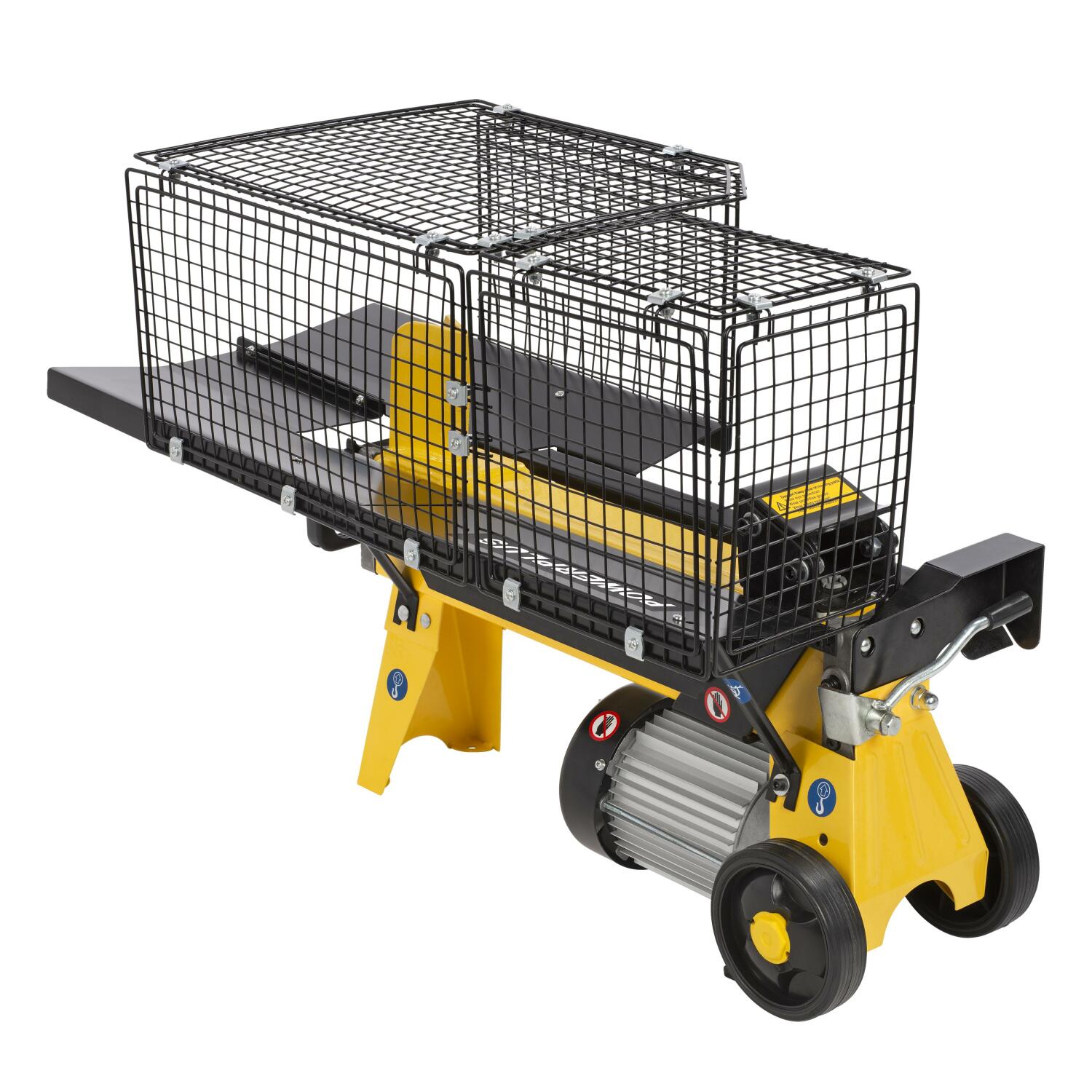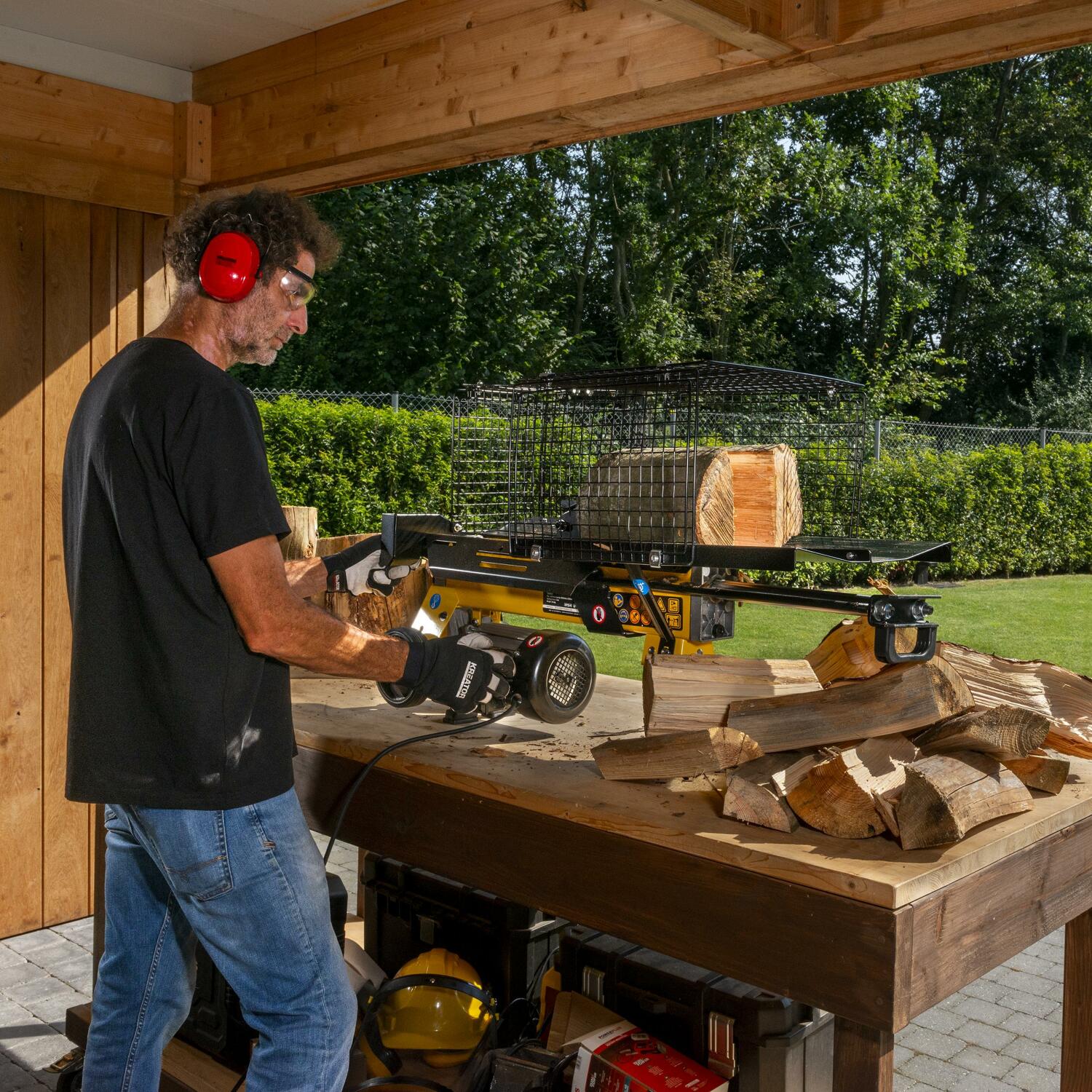 Drošs: Izturīgā būve, kas ieskauj šķelšanas zonu, notur koka bluķus un pasargā jūs no brīviem koka skaidiņām.