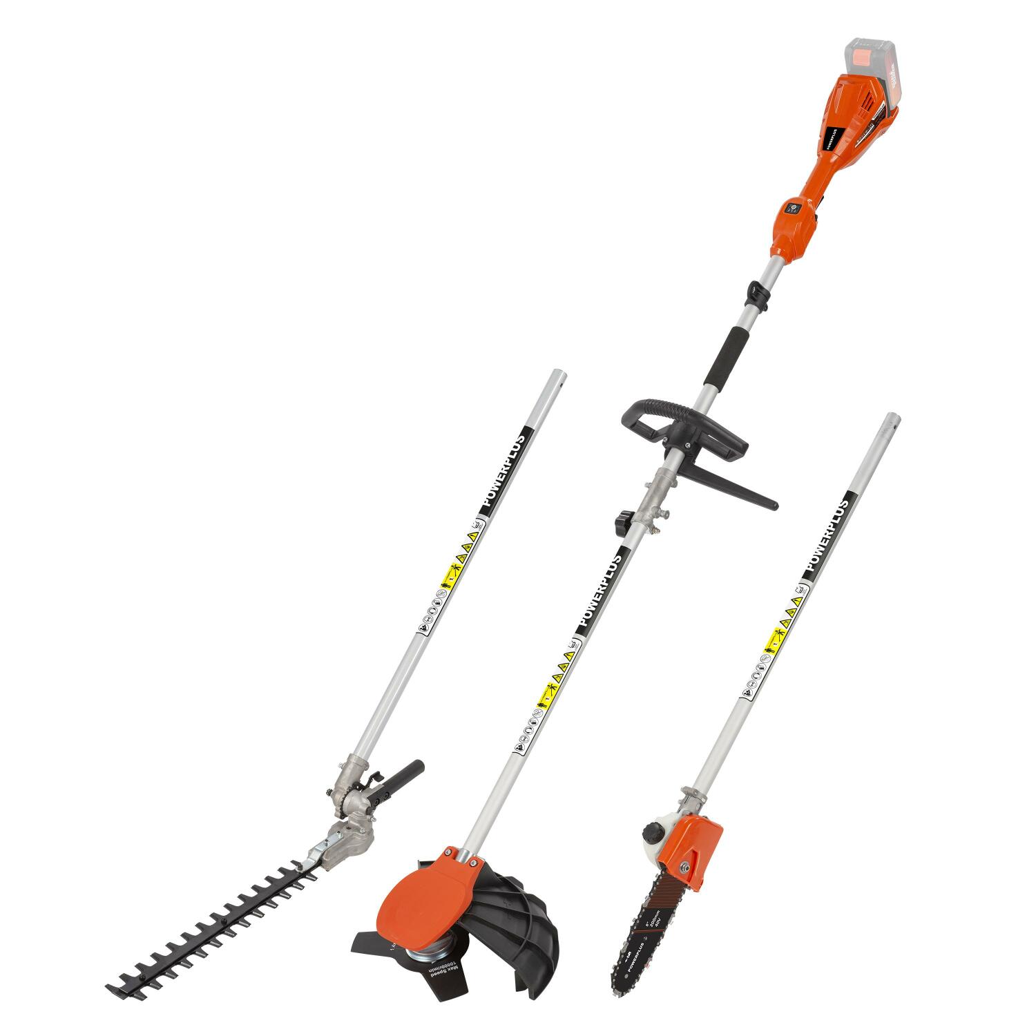 Dārza daudzfunkcionālais rīks 4-in-1, POWERPLUS POWDPG75530, ir aprīkots ar jaudīgu 40 V motoru un to var viegli pārveidot par dzīvžogu šķēre, zāles pļāvēju, zāles pļāvēju vai ķēdes zāģi. Šis rīks ļauj ērti tikt galā ar dažādiem dārza darbiem, atkarībā no izvēlētā piederuma.