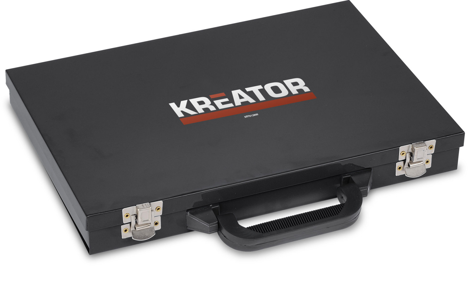 Šis profesionālais urbju komplekts, modelis KREATOR KRT012800, sastāv no 120 urbjiem, katrs pārklāts ar ārkārtīgi spēcīgu un izturīgu titānu. Komplektā ir 70 metāla, 35 akmens un 15 koka urbji, kas ir kārtīgi sakārtoti eleganta metāla kastē.