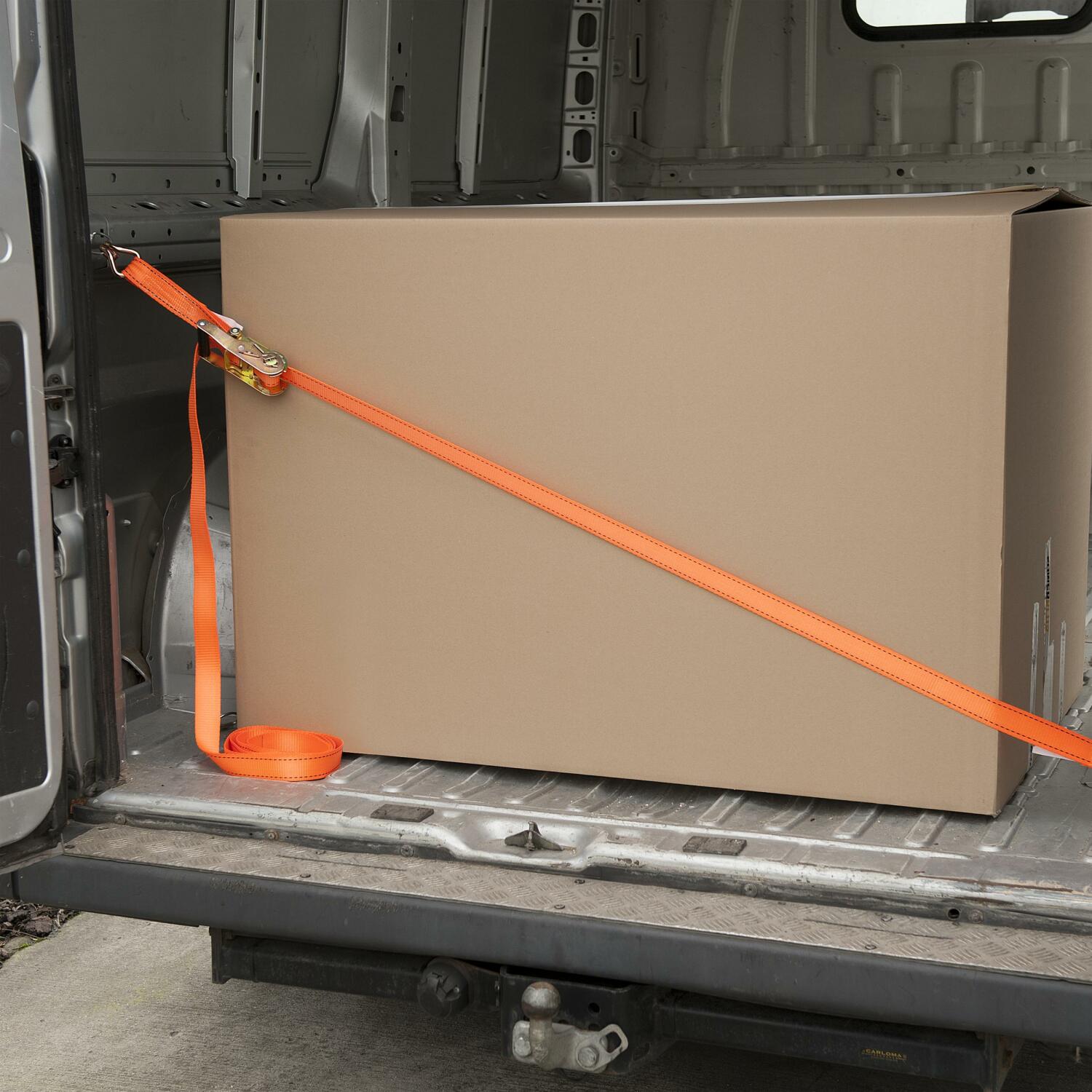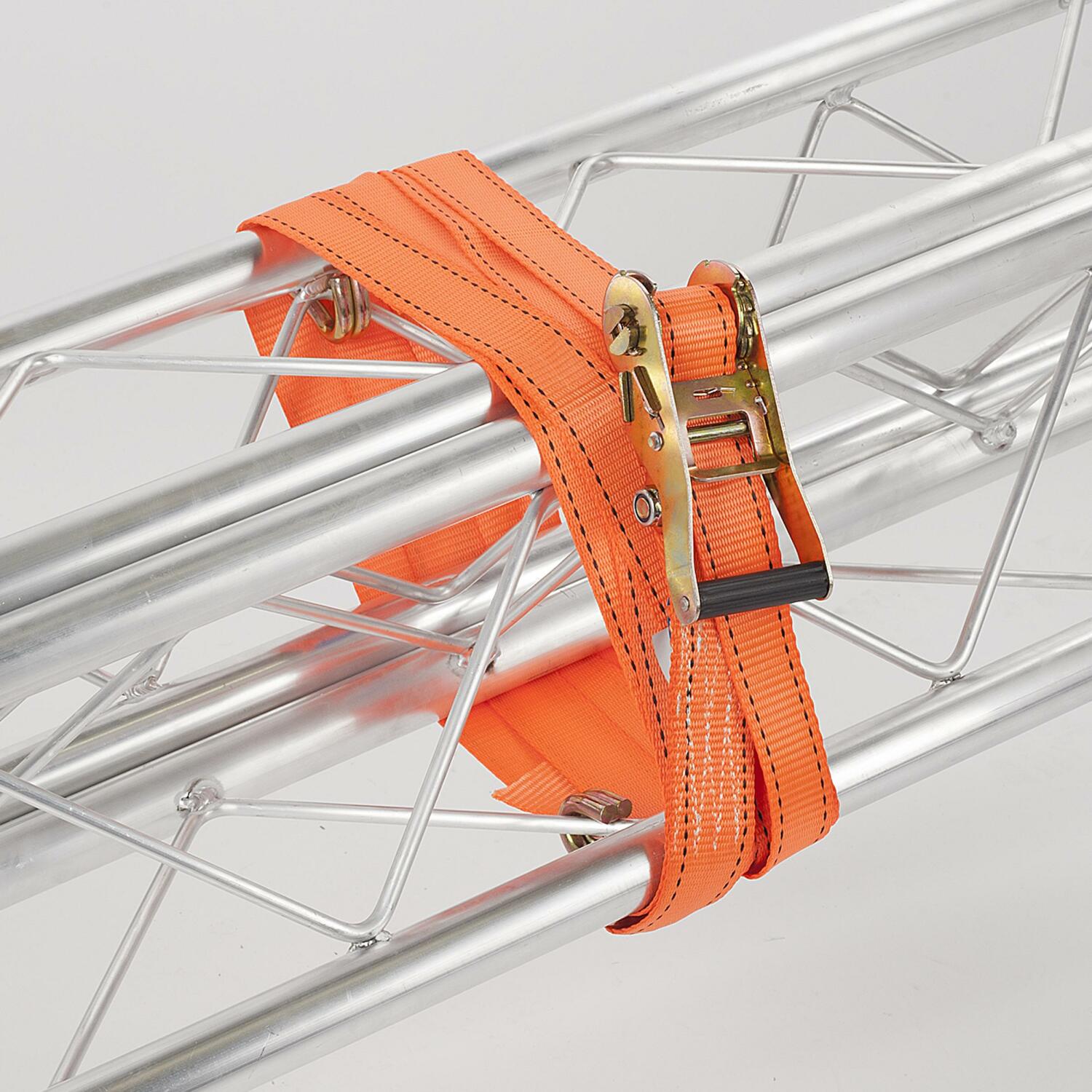Šī profesionālā ratiņu siksna ar J formas āķiem ir ideāla smagu kravu nostiprināšanai, piemēram, pārvadājot preces, lai nostiprinātu mēbeles furgonā, bagāžu uz automašīnas jumta un citu. Ratiņu siksna spēj izturēt līdz 1000 kg svaru, tās garums ir 4,6 m un platums 38 mm. Pateicoties paplašinātajai rokturim, jūs varat radīt vēl lielāku spēku, pievelkot siksnu.