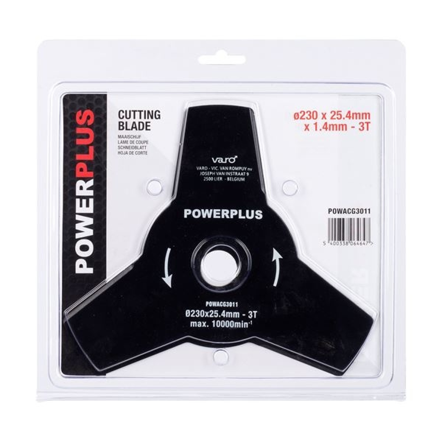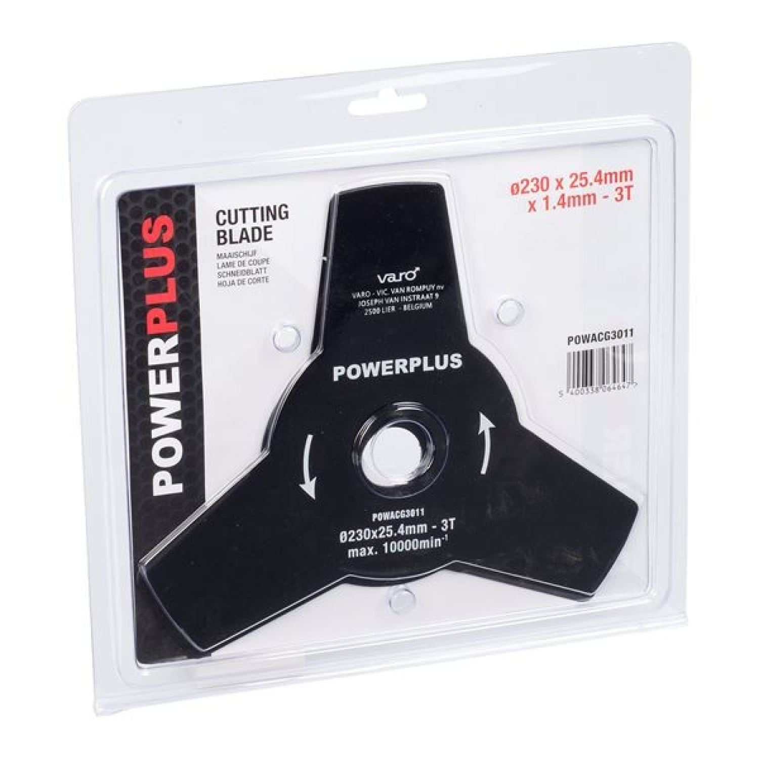 Šī ir griešanas asmens no Powerplus, kas piemērots krūmgriežiem. Diskam ir 3 zobi, un tā izmēri ir Ø230 mm x 25,4 mm x 1,40 mm.