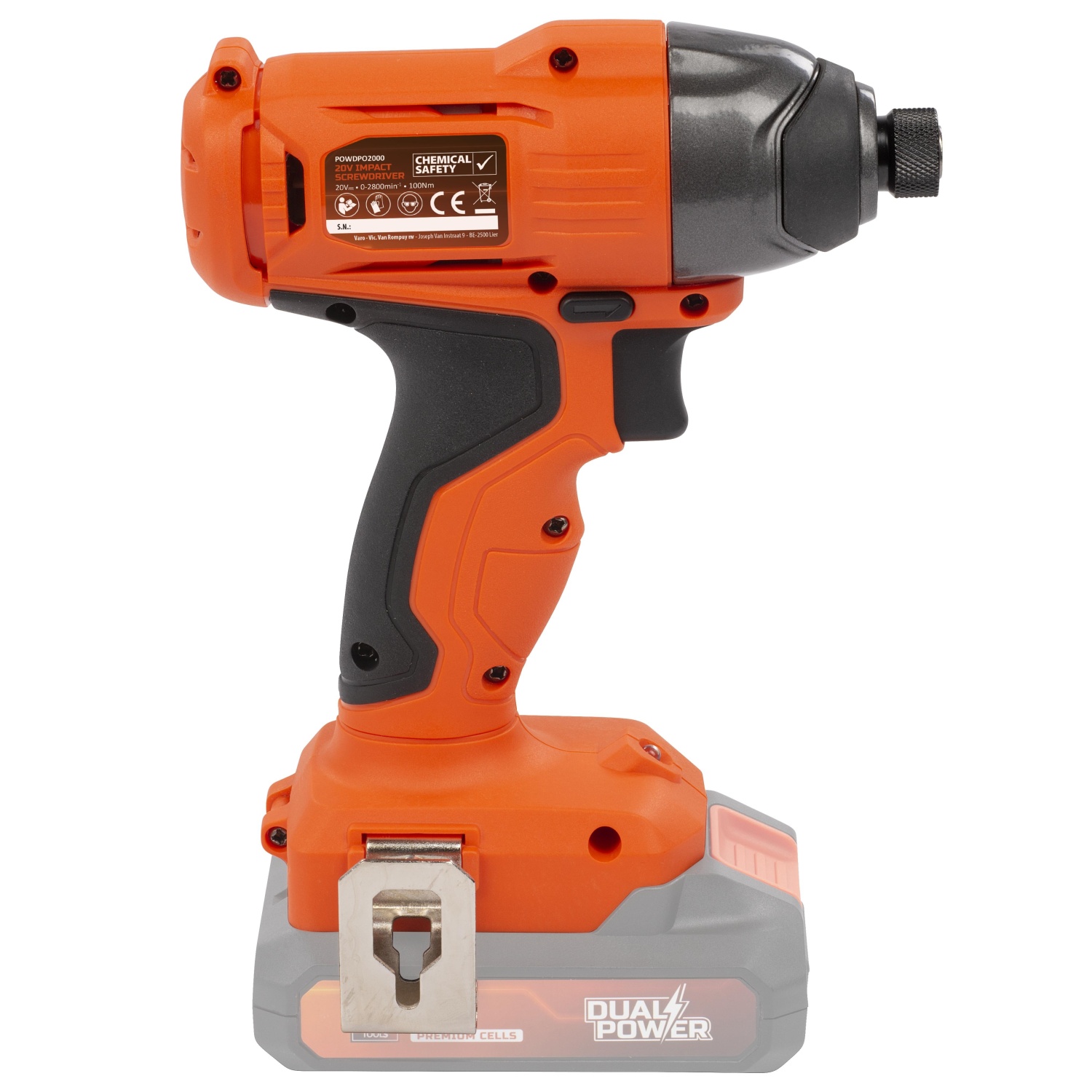 Bezvadu 20 V trieciena skrūvgriezis no Dual Power ir ideāls palīgs visiem projektiem mājās un apkārtnē, kuros nepieciešami skrūves. Tur, kur parastais skrūvgriezis neizdodas, šis trieciena skrūvgriezis spēj uzņemties iniciatīvu!