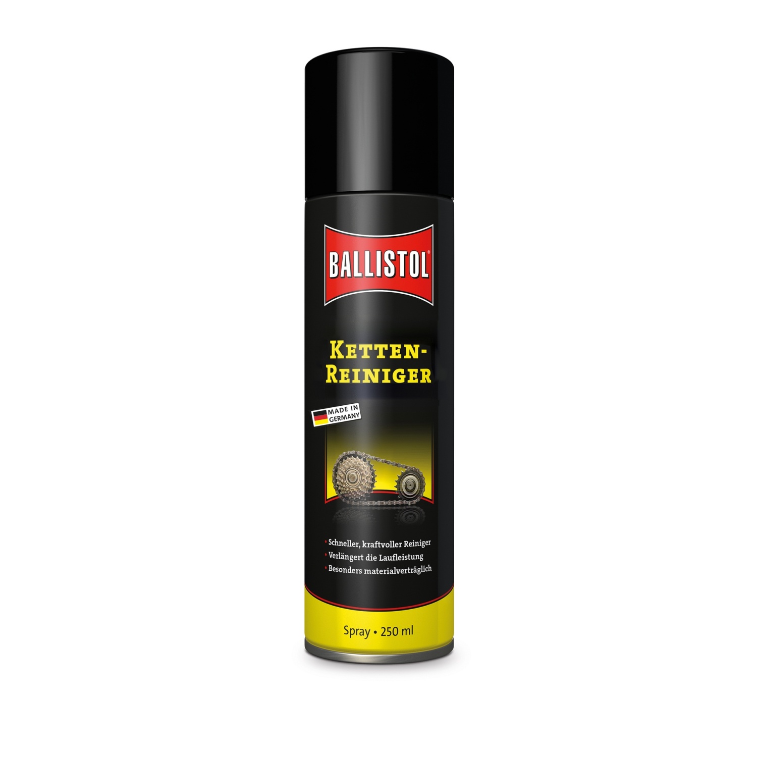 Ballistol ķēdes tīrītājs neatkarīgi noņem noturīgas eļļas paliekas un ir piemērots velosipēdu un motociklu ķēdēm, zobratiem, rāmjiem un diskiem. Tas efektīvi attīra starp ķēdes posmiem un ir neitrāls pret krāsotām virsmām, hromu, alumīniju, plastmasu, gumiju un oglekli. Pateicoties tajā esošajiem korozijas inhibitoriem, tas efektīvi novērš rūsas veidošanos. Ķēdes tīrītājs ir bez PTFE, silikona un sveķiem un nesveķojas.