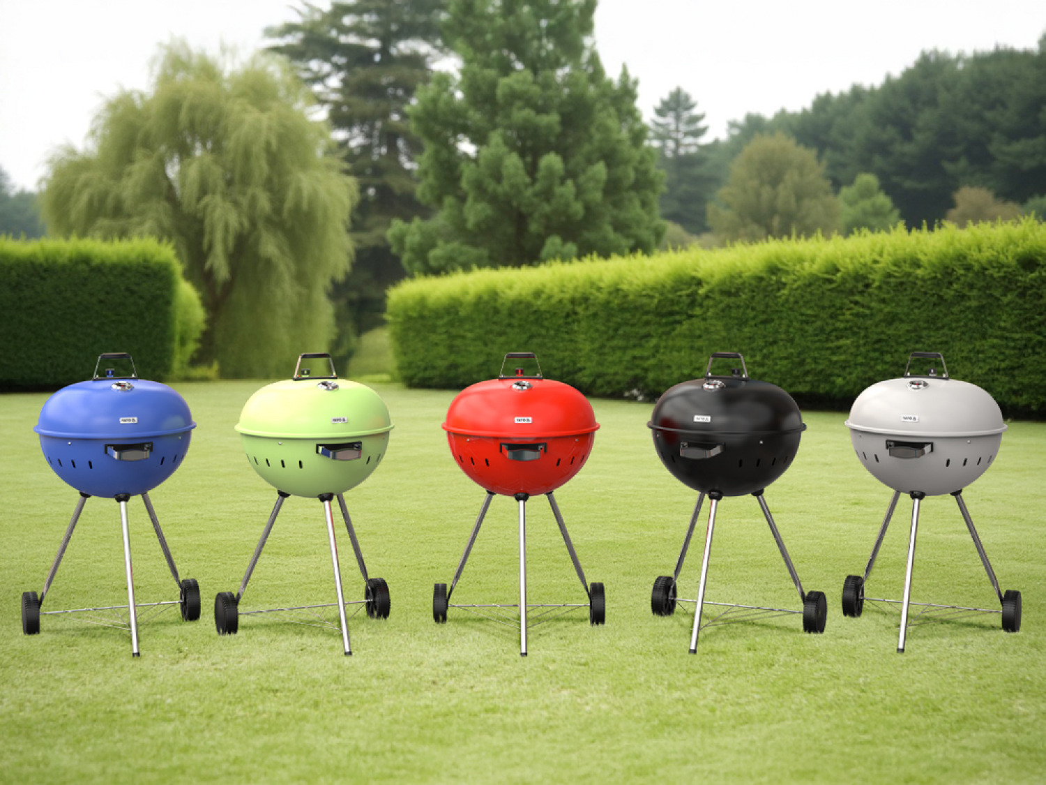 YATO ogļu grils YG-20303 ir portatīvs grils ar hromētu resti un ugunskuru, kas aizveras ar vāku. Šis vieglais grils ir aprīkots ar riteņiem, padarot to viegli pārvietojamu jebkurā vietā terasē vai dārzā.